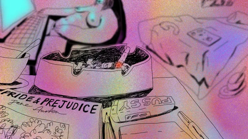 ‘CLICK HERE’ is a short film following a woman’s harrowing experience with a computer virus, and the creatures that inhabit this new world. This film was made using a combination of drawn 2D animation and live-action footage, featuring hand-made costumes and masks.
