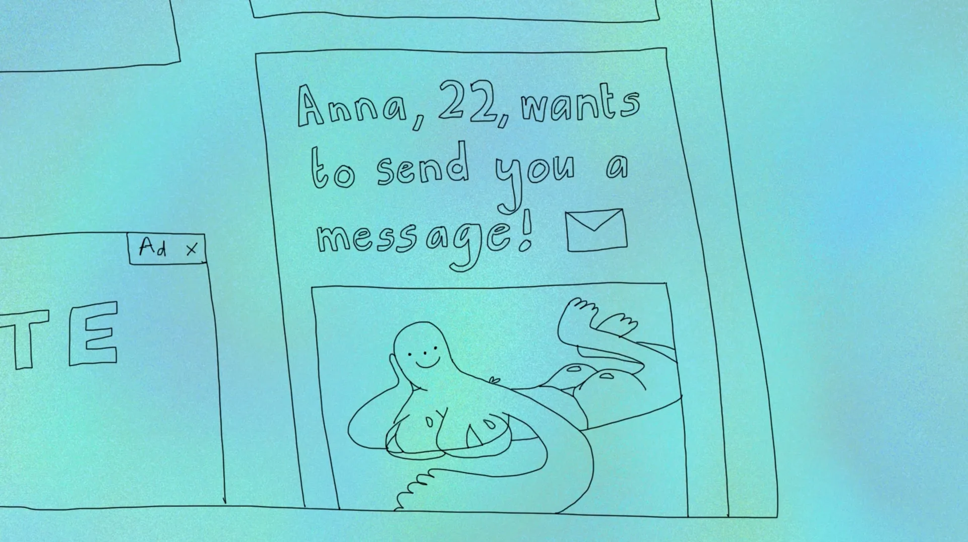 ‘CLICK HERE’ is a short film following a woman’s harrowing experience with a computer virus, and the creatures that inhabit this new world. This film was made using a combination of drawn 2D animation and live-action footage, featuring hand-made costumes and masks.