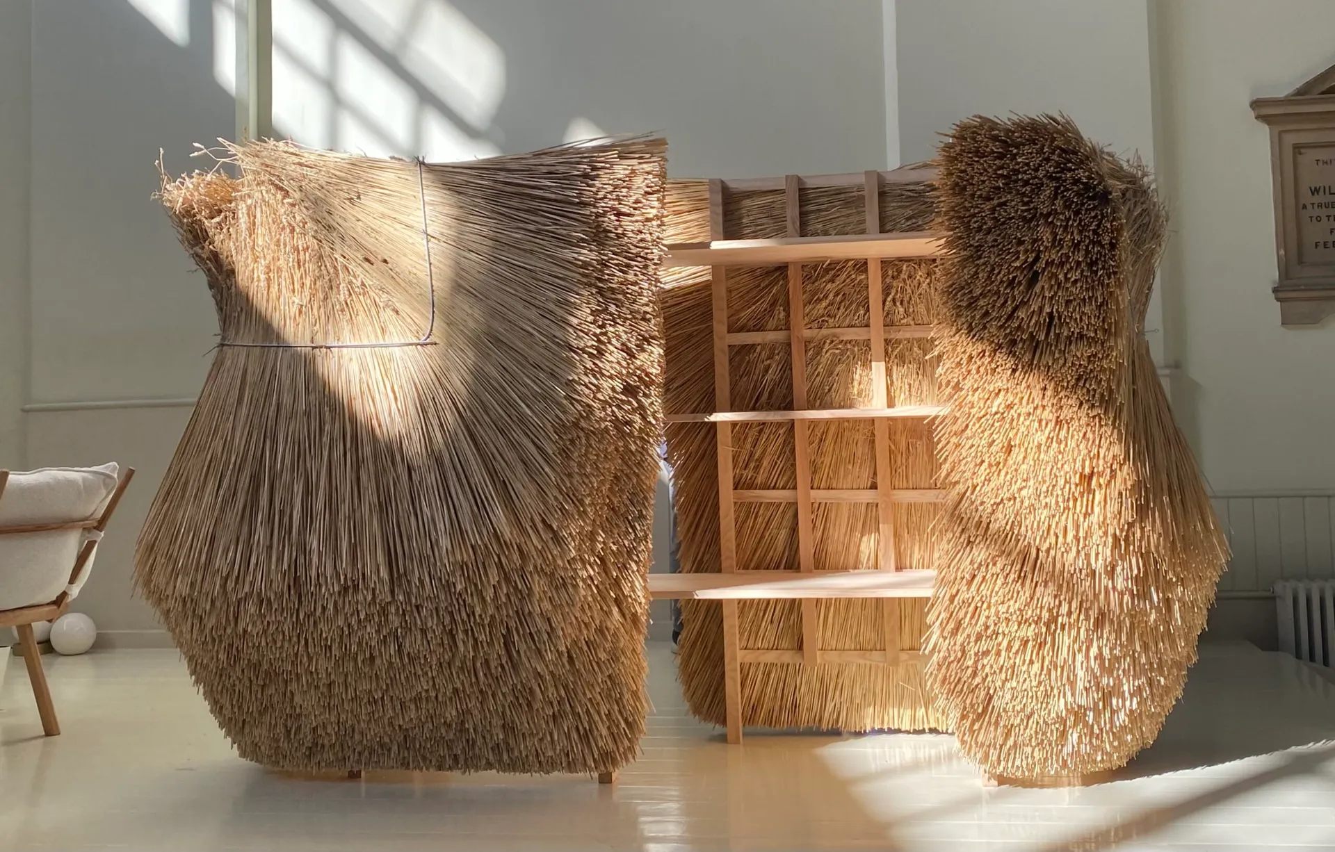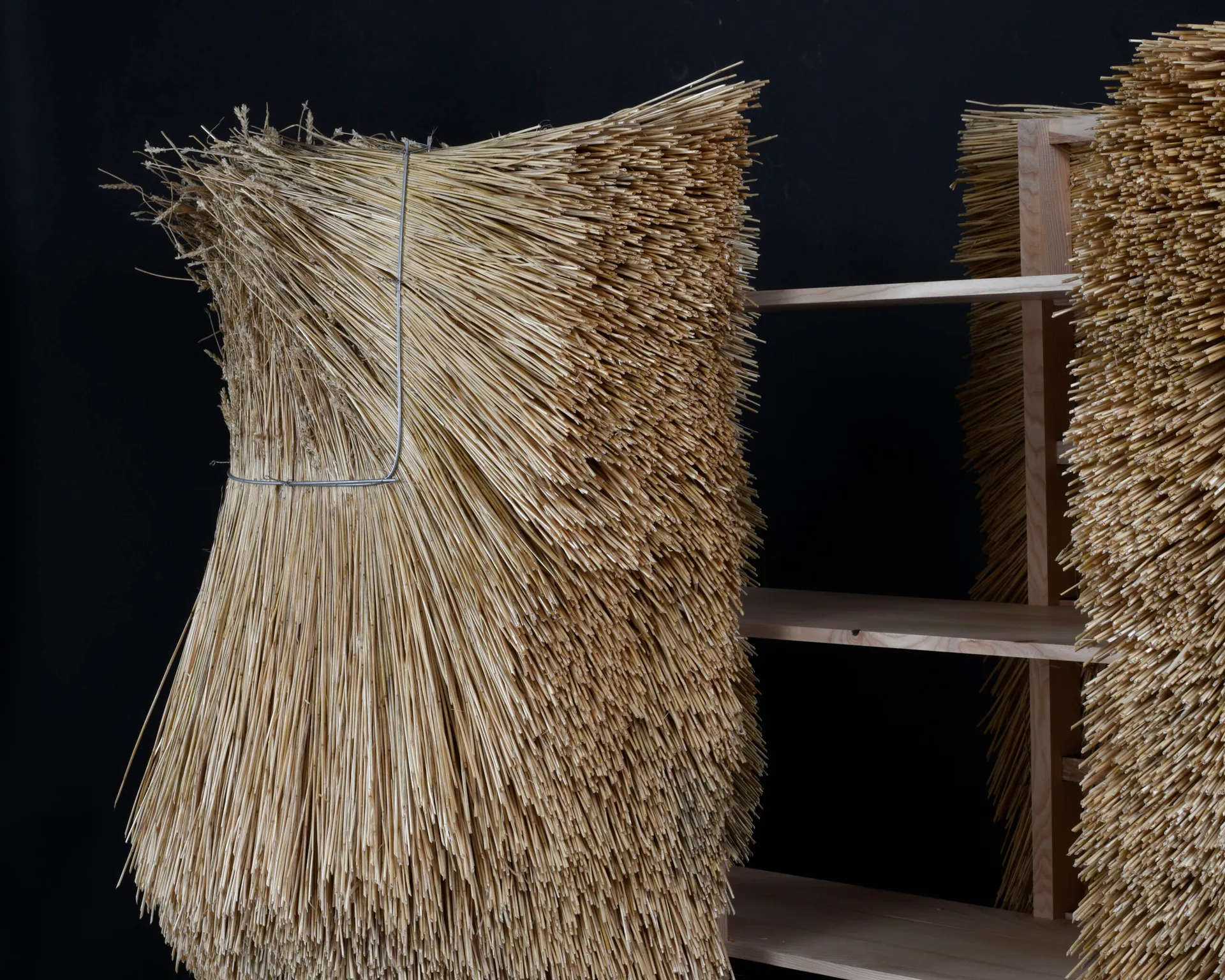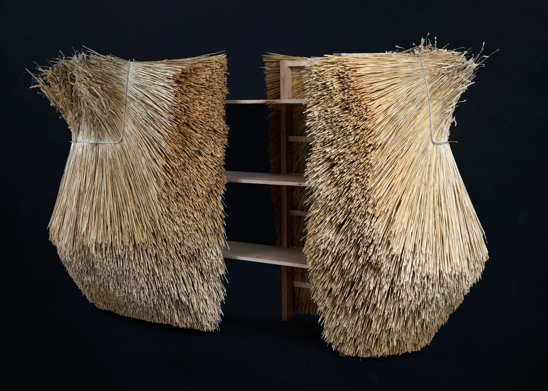 Re-Thatched explores the characteristics, techniques, and materials of thatching with the aim of integrating this traditional craft into contemporary furniture design. “Kow” (pronounced “Koo”) is a thatched shelf that embodies the preservation and adaptation of heritage in modern life by blending traditional techniques with modern functionality. Inspired by the corners of thatched roofs, it is designed as a centrepiece that offers varied perspectives of surfaces, textures, and shapes of thatch. “Kow” marks the first step in the Re-Thatched project, with ongoing work to create new pieces and share the making practices, materials, and textural palettes.