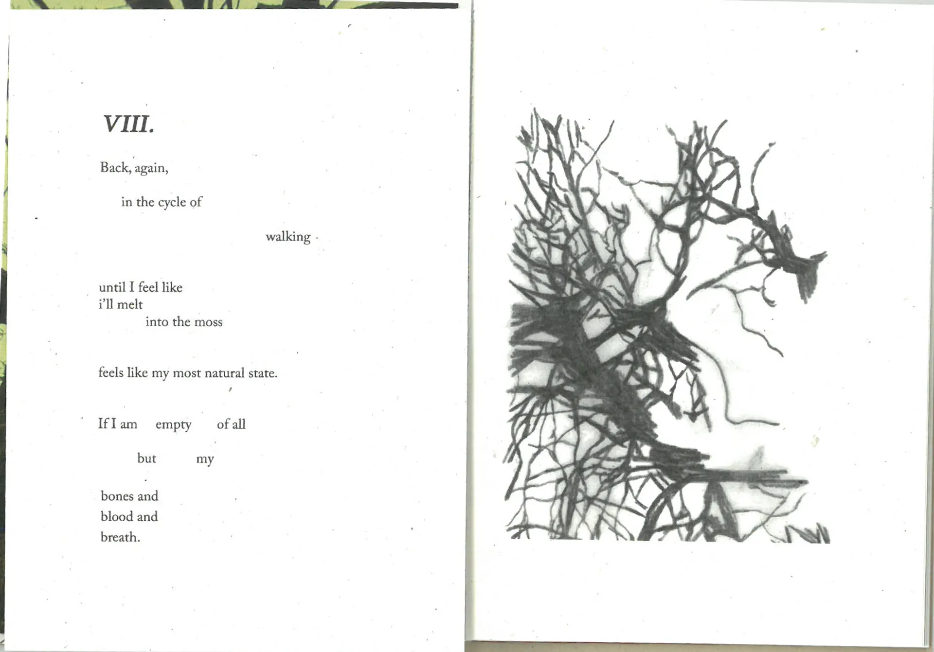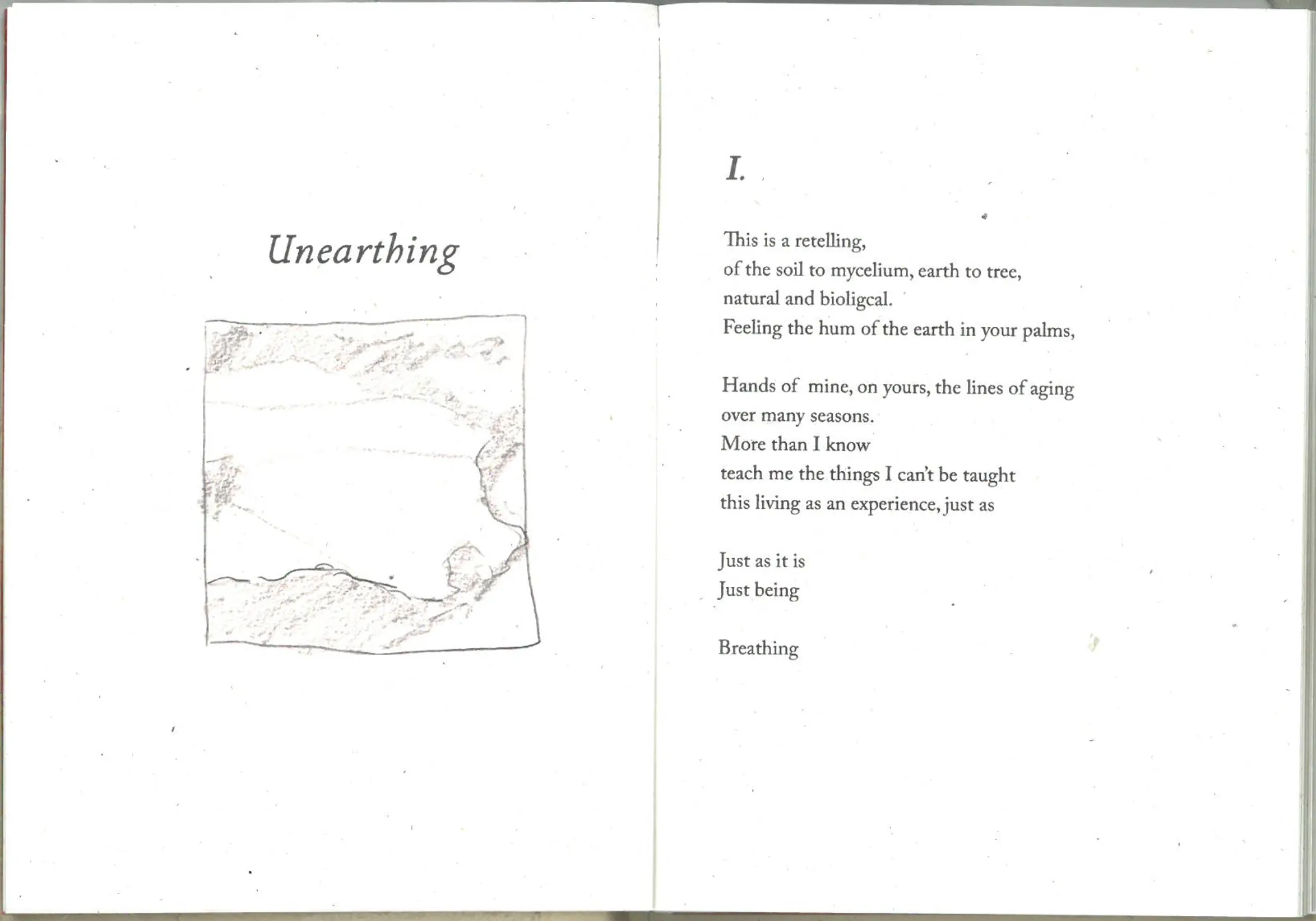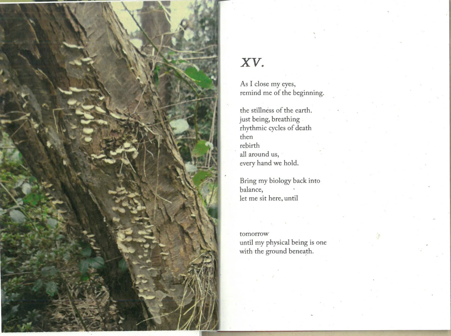 Meditations on returning to the natural cycles and rhythms of the earth. As physical, sensory beings, we have an innate, rooted connection to the earth. We can connect with it’s grounding energy by simply touching grass, tree bark, leaves. ‘A Discovery Of Feeling’ brings these elements of natural existence into sensitive prose. Discovering harmonies between fungal mycelium and the human nervous system through visual and written form.