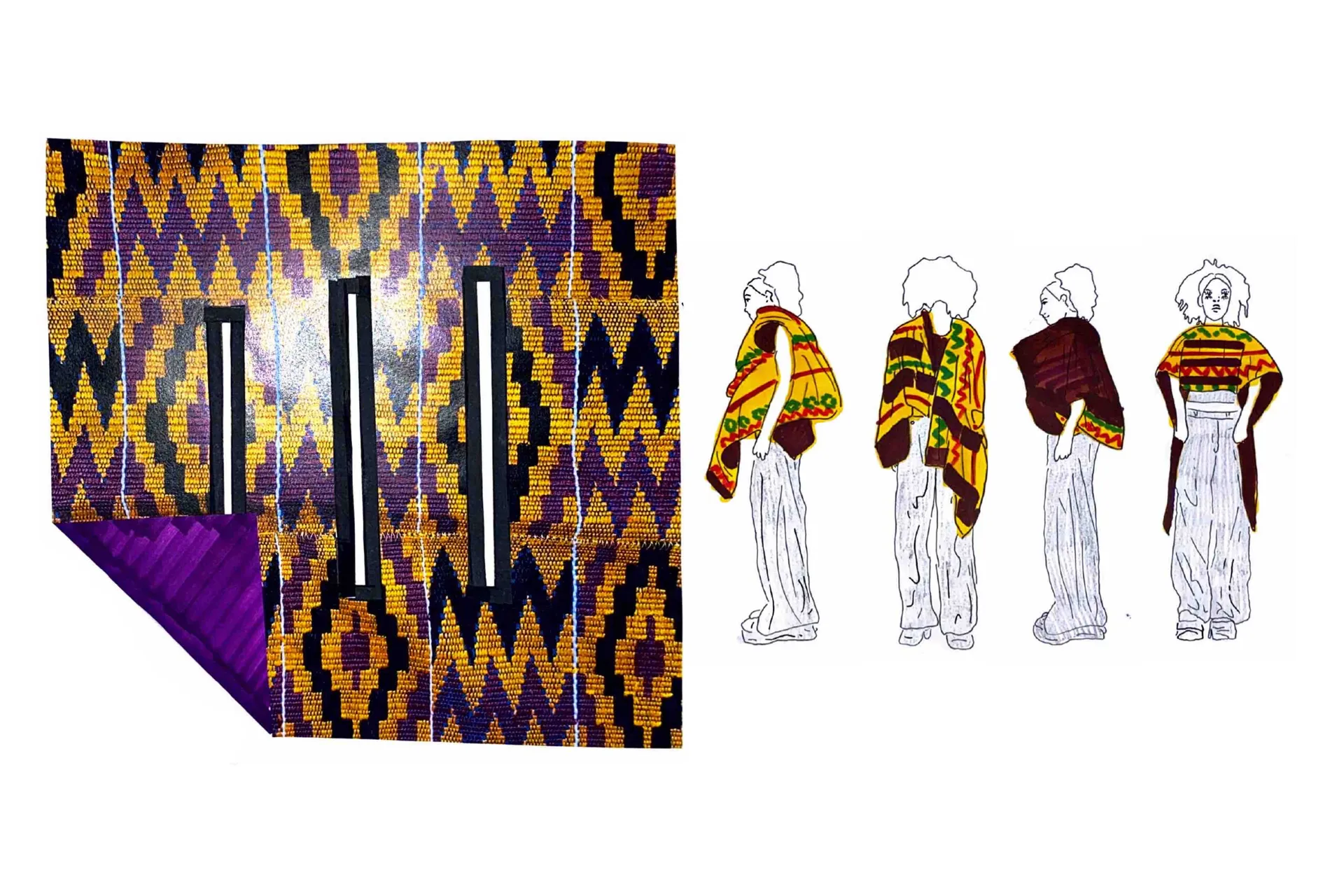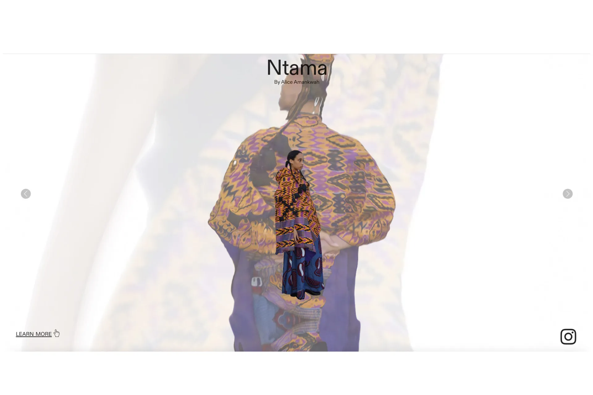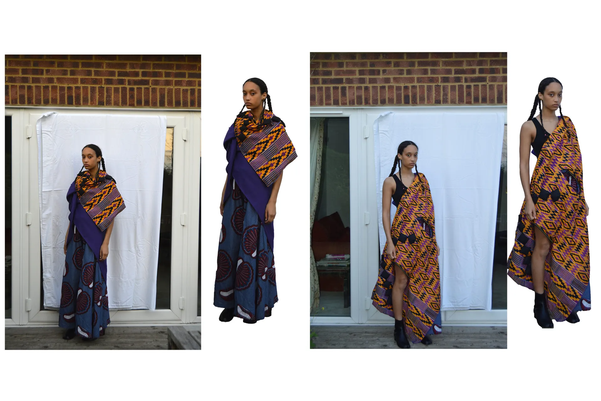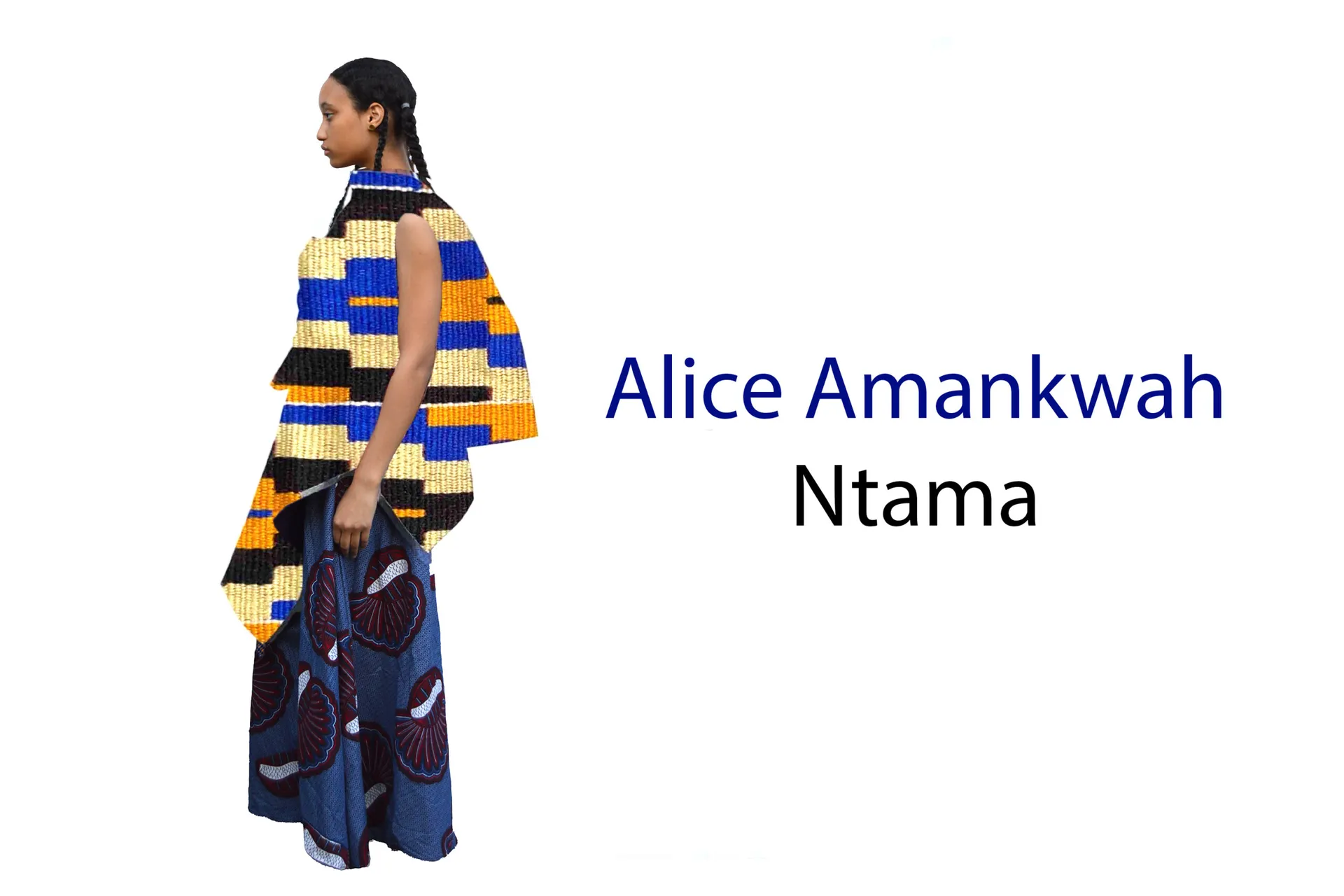 ‘Ntama’, which means ‘clothing, cloth or garment’ in the ‘Twi’ dialect spoken by my grandparents. This garment can be draped into many shapes and forms for various occasions. Drawing on my Ghanaian heritage, it is made out of ‘kente cloth’ fabric and the construction inspired by how kente cloth is traditionally draped in many different ways by the people of Ghana. My garment uses the traditional Ghanaian textile, formed in an evolved way to create something new, modern and futuristic. This evolution is enhanced with the presentation using AR, VR and 3D modelling. The associated website digitally preserves the histories and stories behind ‘kente cloth’ as told by my grandparents.