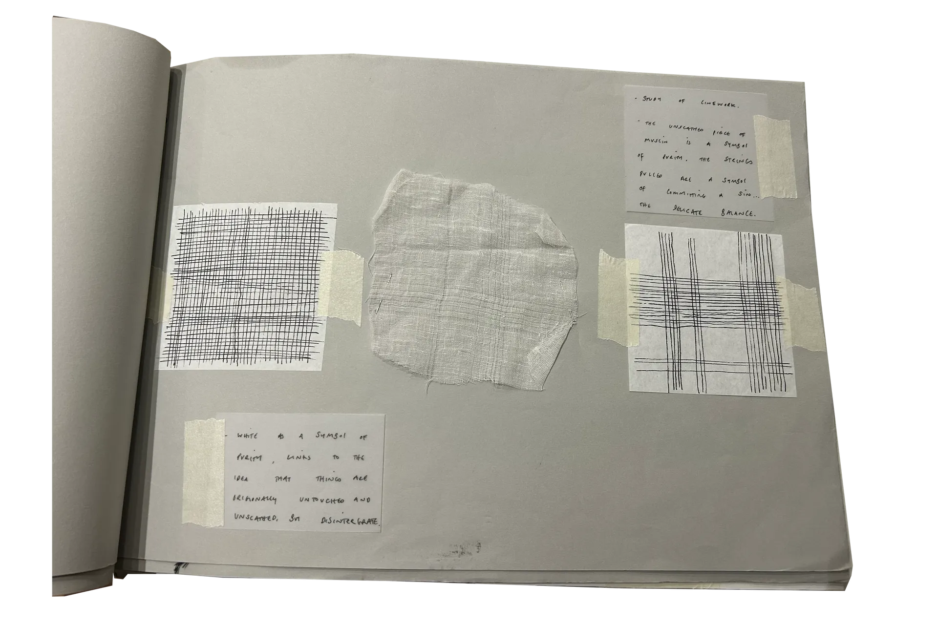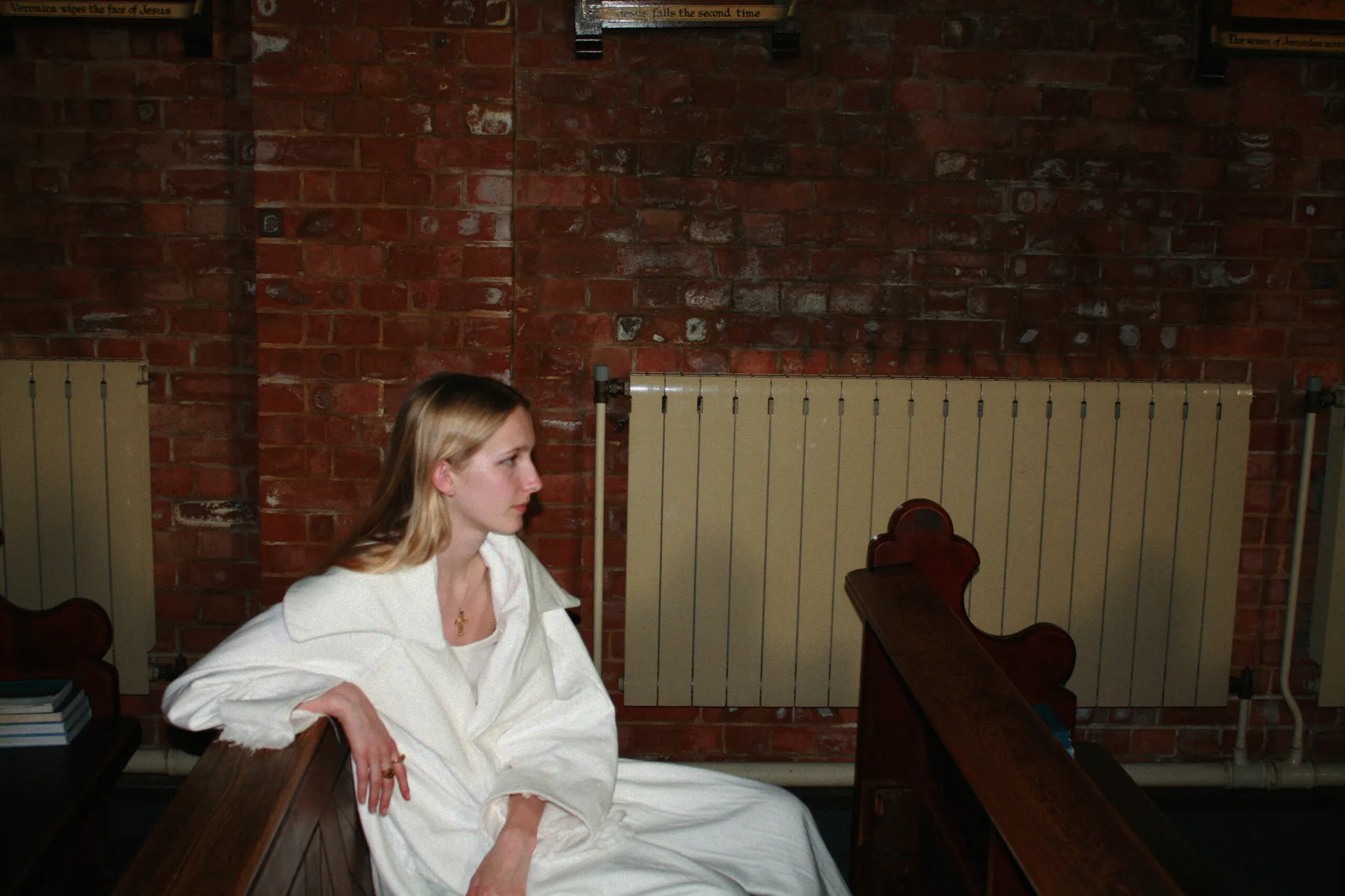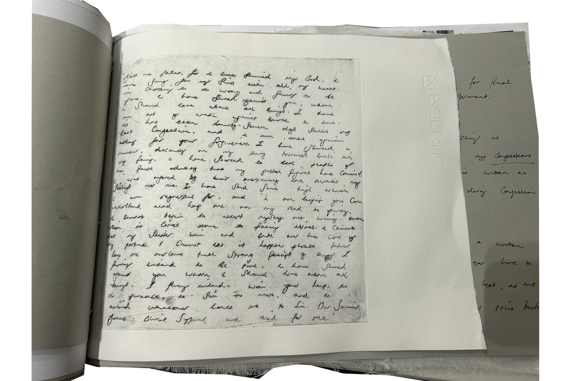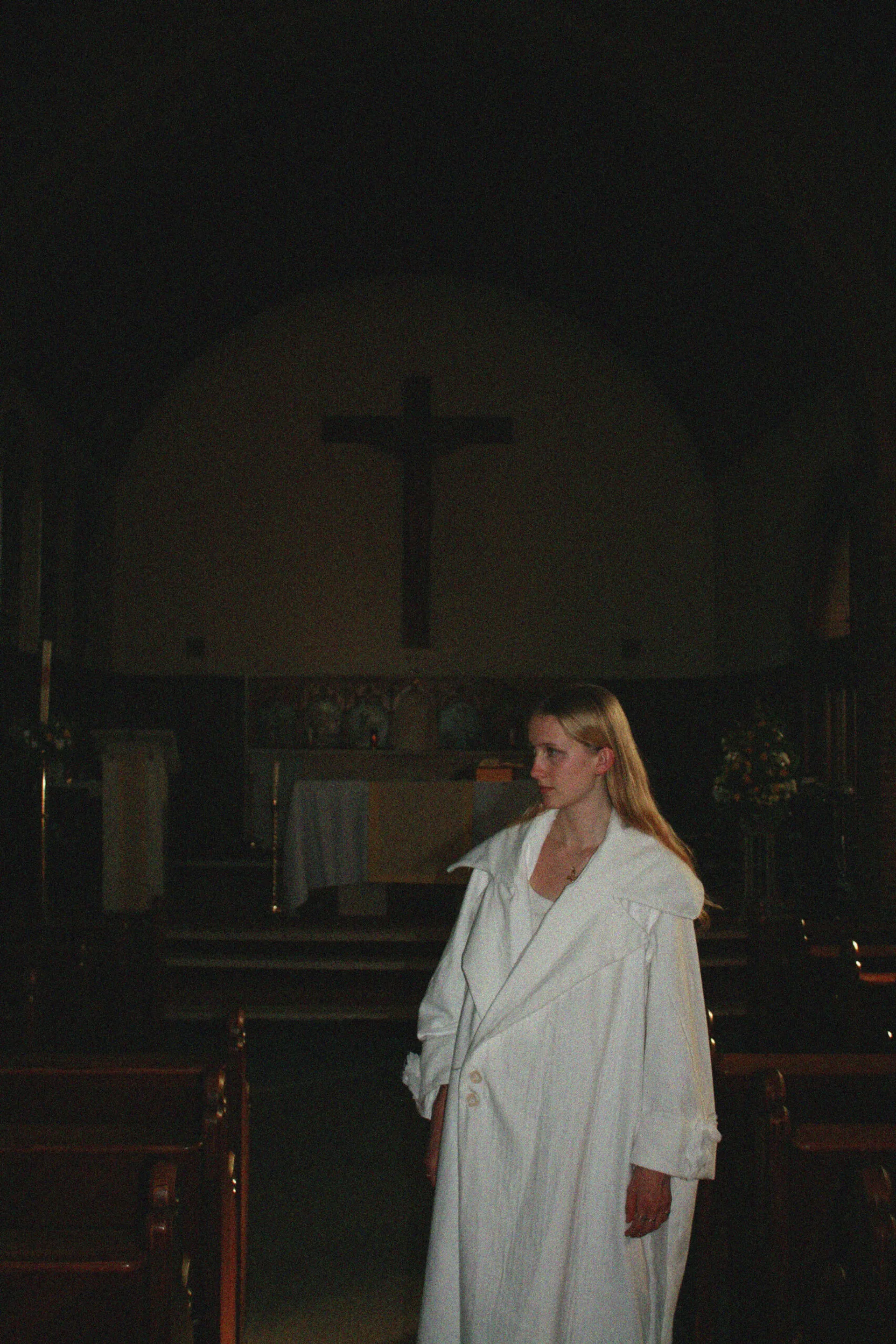 I designed my garment for a repentant sinner, looking at a journey of purity and rebirth of a person. I aimed to combine my love for tailoring and construction with a more conceptual theme, therefore I created a tailored jacket symbolising growth and purity through confession. the jacket is oversized, as a symbol of growing into your sins, embellished with ripped muslin on the seams. on the inside of the jacket, I created an etching inspired by confession, the etching is a handwritten note, based on what one says in confession.