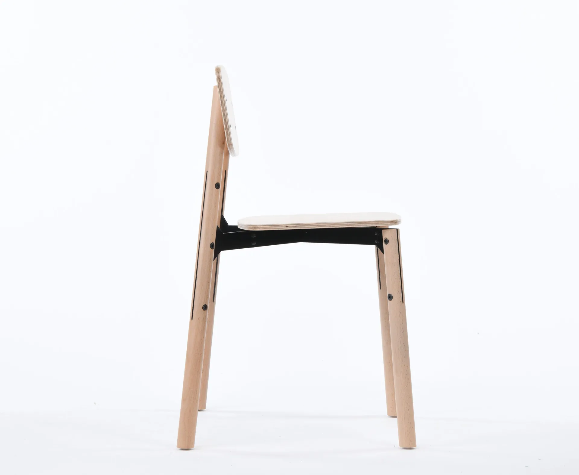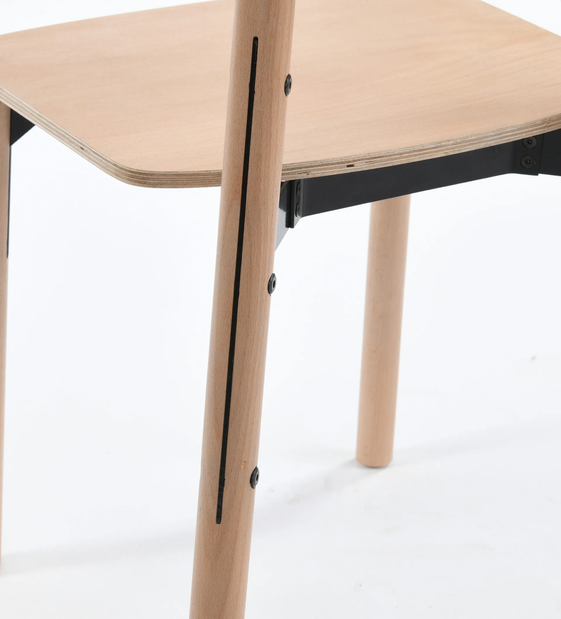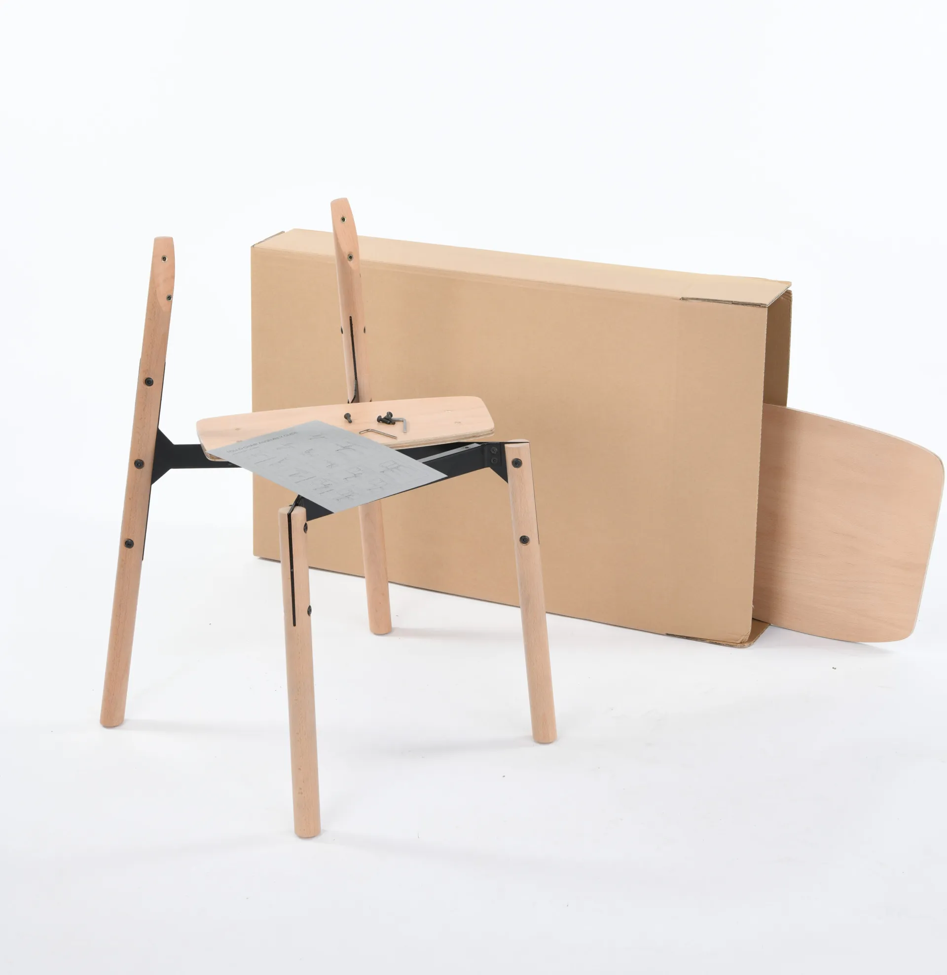 This domestic side chair is designed to fit easily within a hand-held box. The chair’s construction allows it to be dismantled into its component parts, making it convenient to transport from the warehouse to the shop and to the home. This design project evolved into an investigation into the stability of a chair constructed from disassembled parts. The process involved refining the chair’s form to enhance its functionality as a disassemblable product. Within the constraints of disassembly, the design process delved into the structural and manufacturing possibilities, transitioning from welded frames to bolted frames. This development of the frame was driven by the goal of enhancing both the chair’s stability and the user experience. The bolted frame not only improves stability but also highlights the satisfaction and sense of accomplishment that comes from self-assembly. This approach celebrates the user’s role in constructing their furniture, offering both practicality and personal involvement.