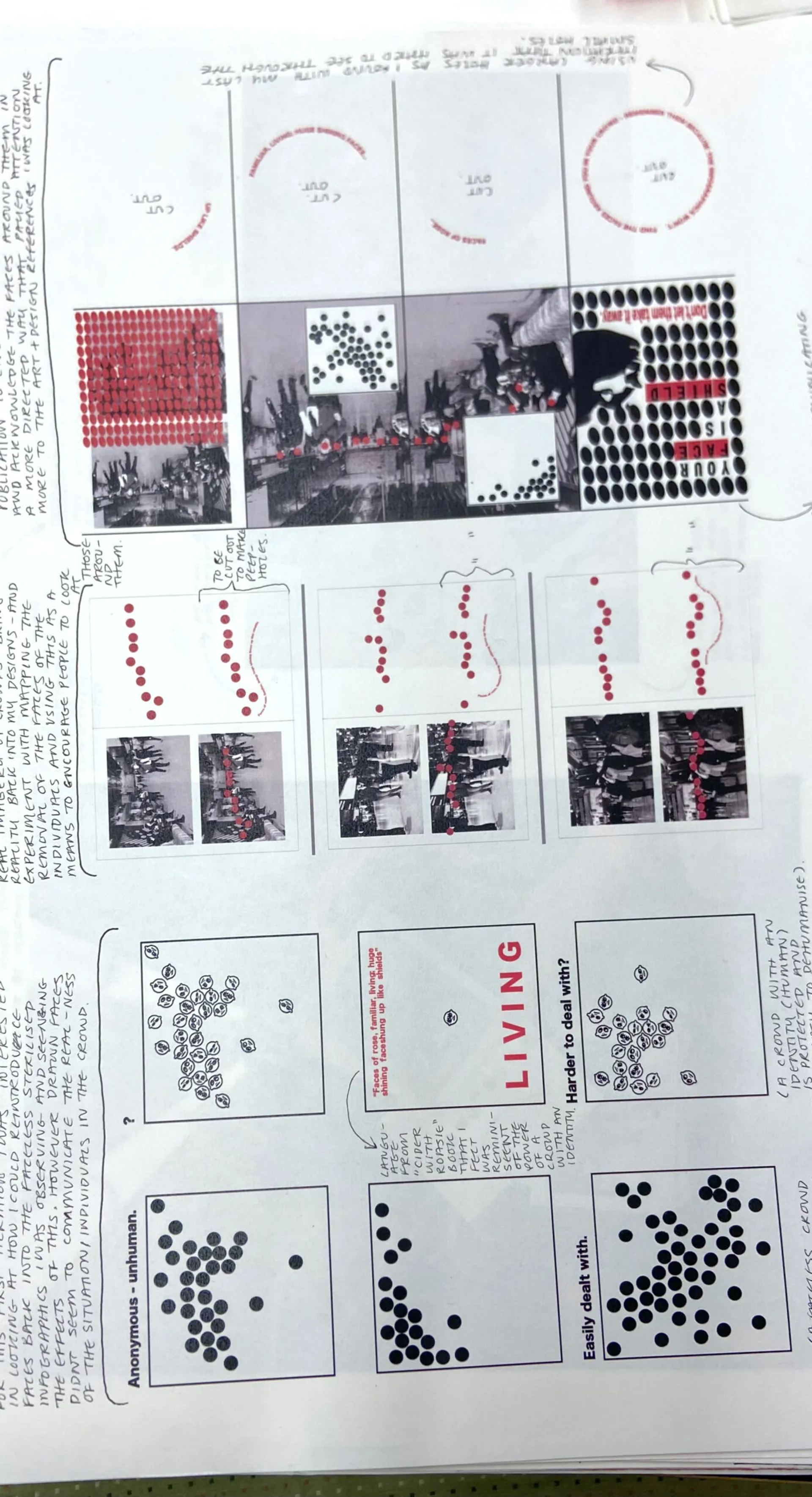 Crowds – commuting crowds, raving crowds, protesting crowds, angry crowds, happy crowds, large crowds, small crowds, flocks, herds, clumps, “we”. Over the course of FMP I have become obsessed by crowds and in particular the way in which they are controlled, regulated and minimised in everyday life whether that be through architecture, law or language. We are systematically being packed, packaged, sealed and sterilised into polite, containable, socially acceptable crowds (unemotional, sterile, inhuman) – crowds that don’t threaten the idea of a mob.