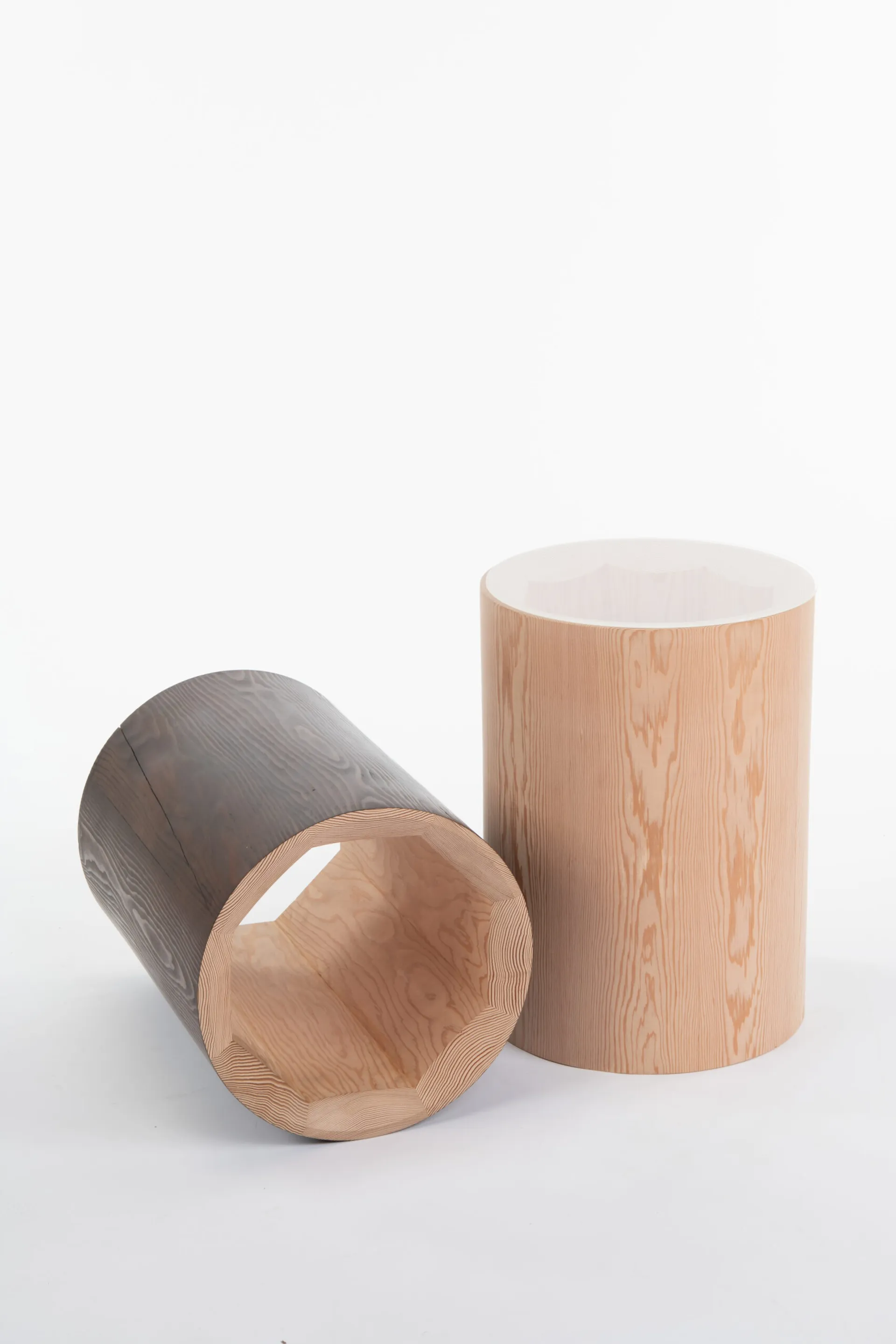 Taking from Ilse Crawfords ideology that we connect with the objects around us through our senses stemming from our primitive nature, mixed with Olafur Eliasson’s experience making, through storytelling, I explored the primitive space, The Yorkshire Coast – the most eroded coastline in the UK. A significant amount of people were able to connect with these spaces and I tasked myself the job of recreating that feeling through eroding a natural material to reveal its inner natural beauty, just as the Yorkshire coast does. This tactile piece of furniture really resonates with the natural environment and gives us a chance to appreciate what’s around us even with our busy lifestyles. The collection consists of 3, one slightly more weathered than the other so you can see the process: One natural, One ebonised and One ebonised and sandblasted from one direction.