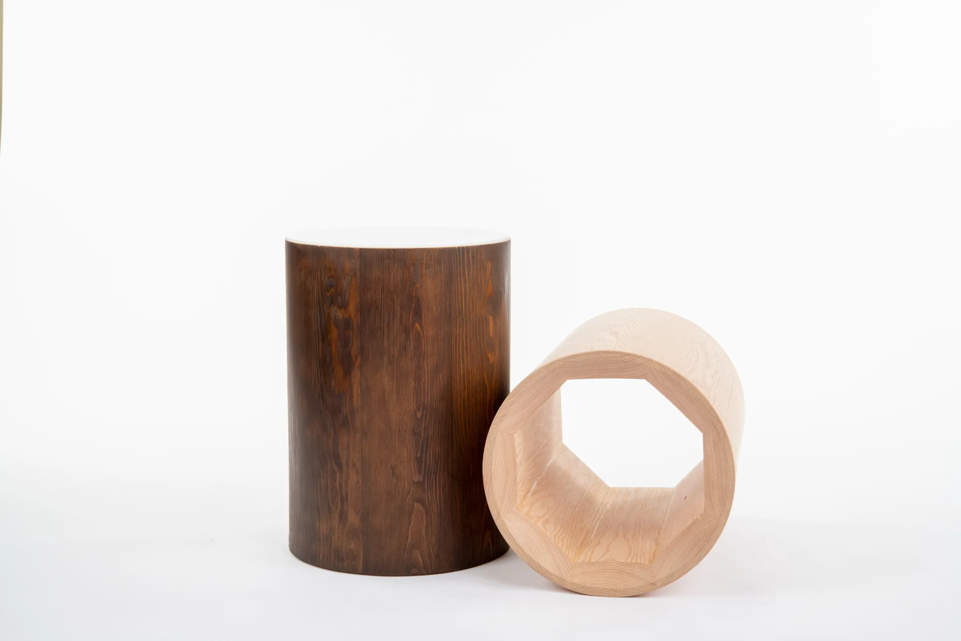 Taking from Ilse Crawfords ideology that we connect with the objects around us through our senses stemming from our primitive nature, mixed with Olafur Eliasson’s experience making, through storytelling, I explored the primitive space, The Yorkshire Coast – the most eroded coastline in the UK. A significant amount of people were able to connect with these spaces and I tasked myself the job of recreating that feeling through eroding a natural material to reveal its inner natural beauty, just as the Yorkshire coast does. This tactile piece of furniture really resonates with the natural environment and gives us a chance to appreciate what’s around us even with our busy lifestyles. The collection consists of 3, one slightly more weathered than the other so you can see the process: One natural, One ebonised and One ebonised and sandblasted from one direction.