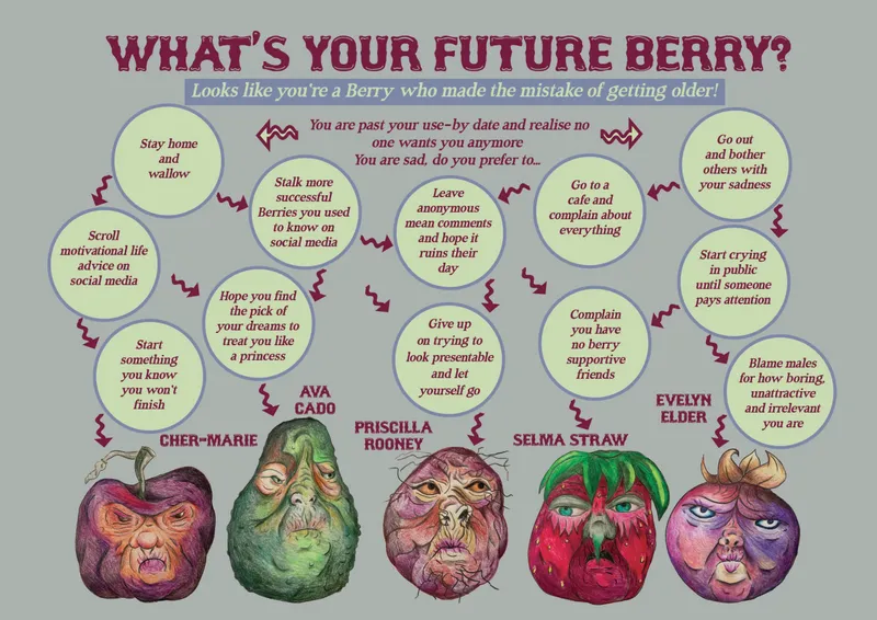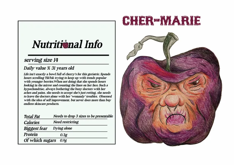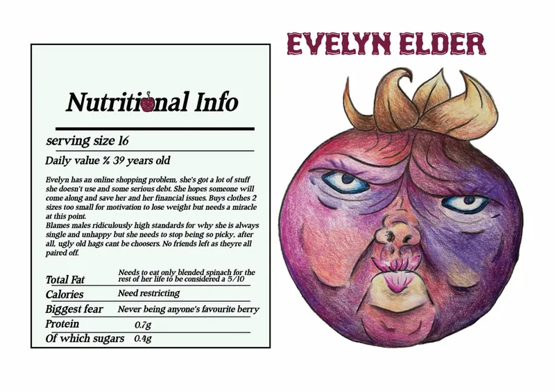 The project imagines these discriminated women as real produce, illustrated to emphasise flaws that society will be judge them for. The old berry ladies are ridiculed and seen as worthless for their lack of youth, beauty, contribution to motherhood and other feminine traits that often equate our worth.