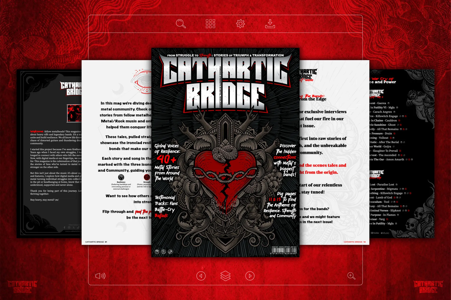 “Cathartic Bridge is more than a magazine, it’s a digital magazine where metalheads share their stories of resilience, strength, and community building. Through the power of music and digital connection, we explore how metal music unites us, help each other find their strengths and overcome adversity.”