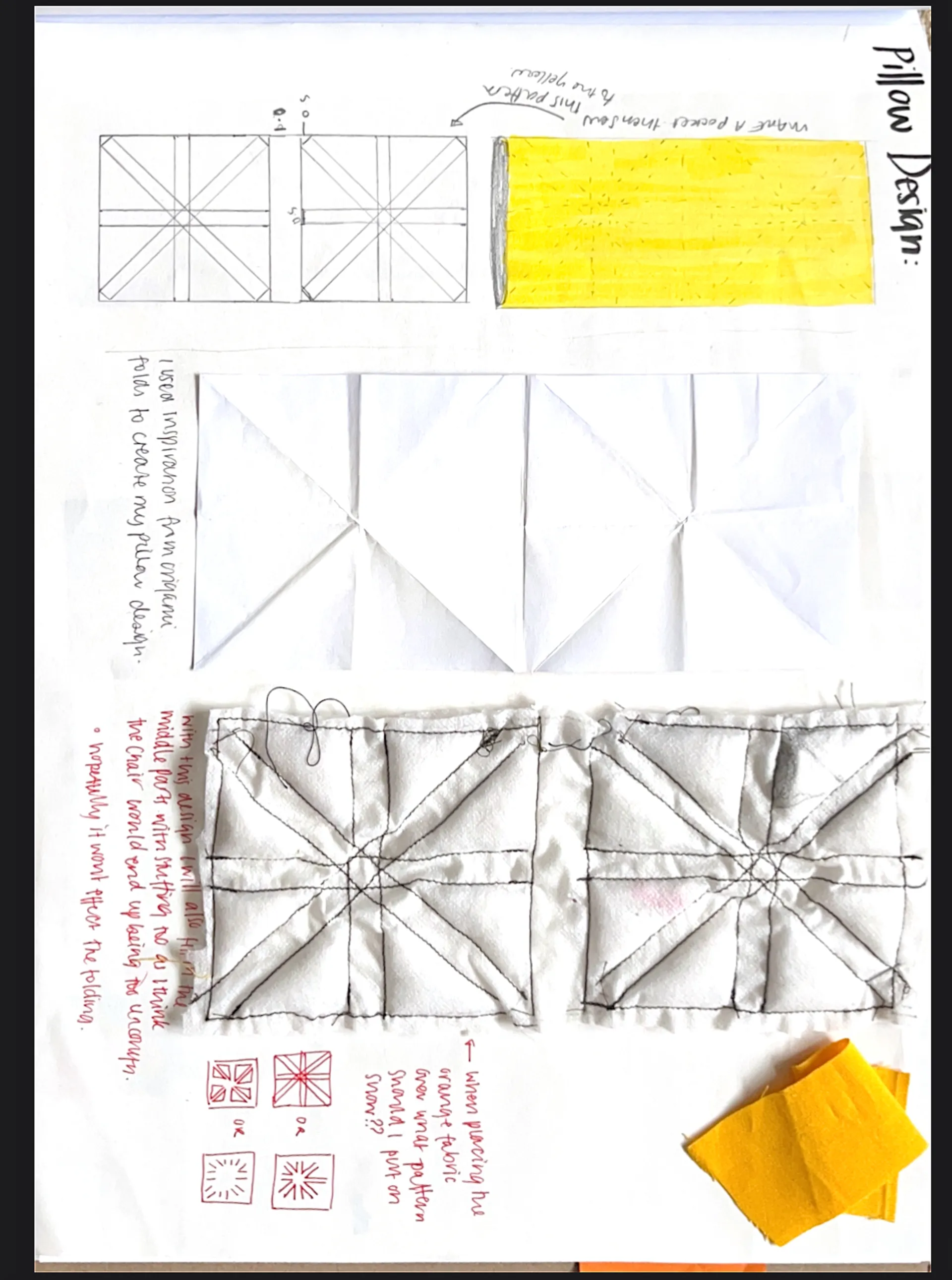 My final major project (FMP) has focussed on folding and specifically the satisfaction gained through folding. My final piece has been influenced by transformational furniture and it has become a multifunctional piece of furniture that can transform from a folded state into a chair or a table. It uses dowel plugs to lock and secure each transformation, giving it structure and strength for when it is in use. I have also designed a folding cushion that attaches to the chair, providing comfort to the back and seat. When not in use, the furniture neatly and easily folds into a 600x600mm square, 70mm deep, which makes it very portable and easy to store.