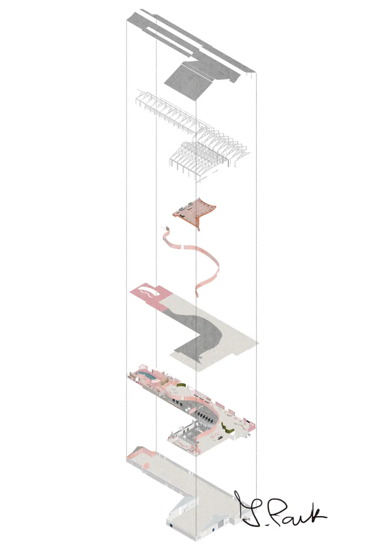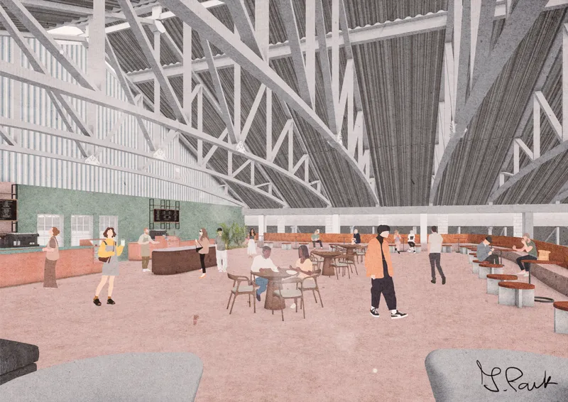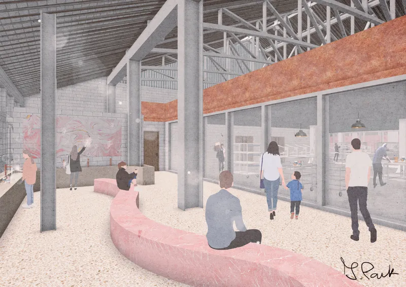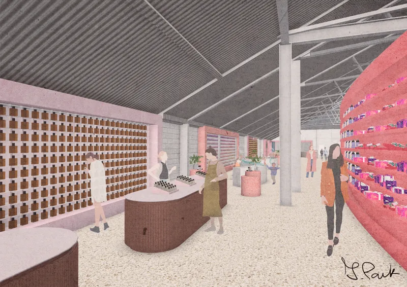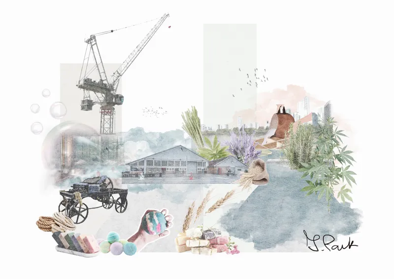 The project rebrands Chatham’s historic dockyard into a soap factory, bath, and handmade soap retail area, inspired by its rope-making history. A bottle-shaped hemp soap souvenir pays homage to hemp’s significance in the 18th-century rope industry while subtly addressing local issues. The transformation of the No.1 Workbase and Armour Plate shop into a contemporary soap factory blends heritage with modern functionality, aiming to evolve into a successful local cosmetic brand. The building will serve as a sustainable soap production centre and interactive community hub, promoting circular economy principles and climate awareness. Rebranded as ‘Chatham Bubble,’ the project aims to unite locals and visitors through soap making and inclusive bath experiences, fostering resilience and promoting mental well-being.