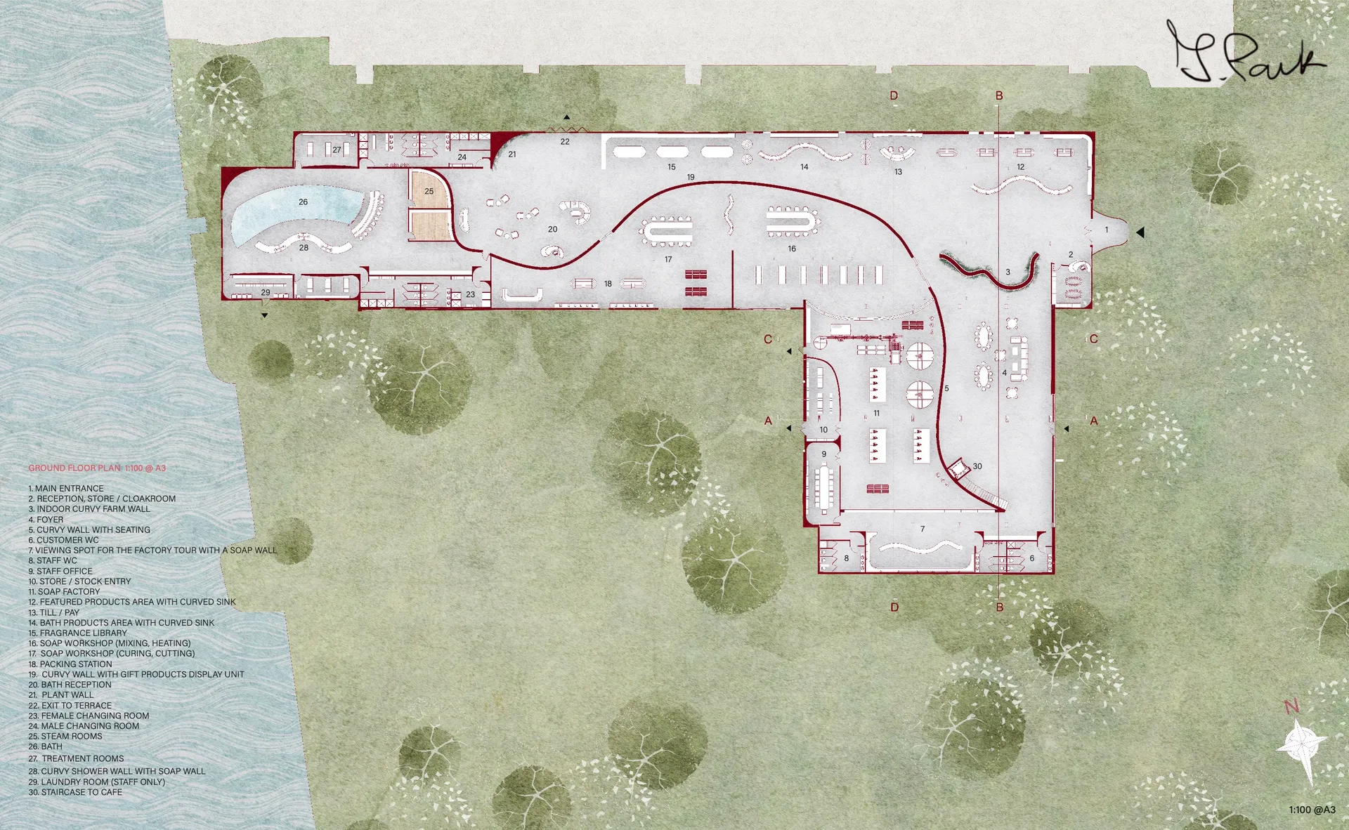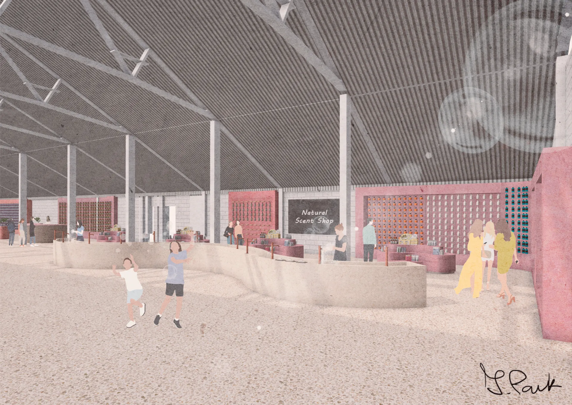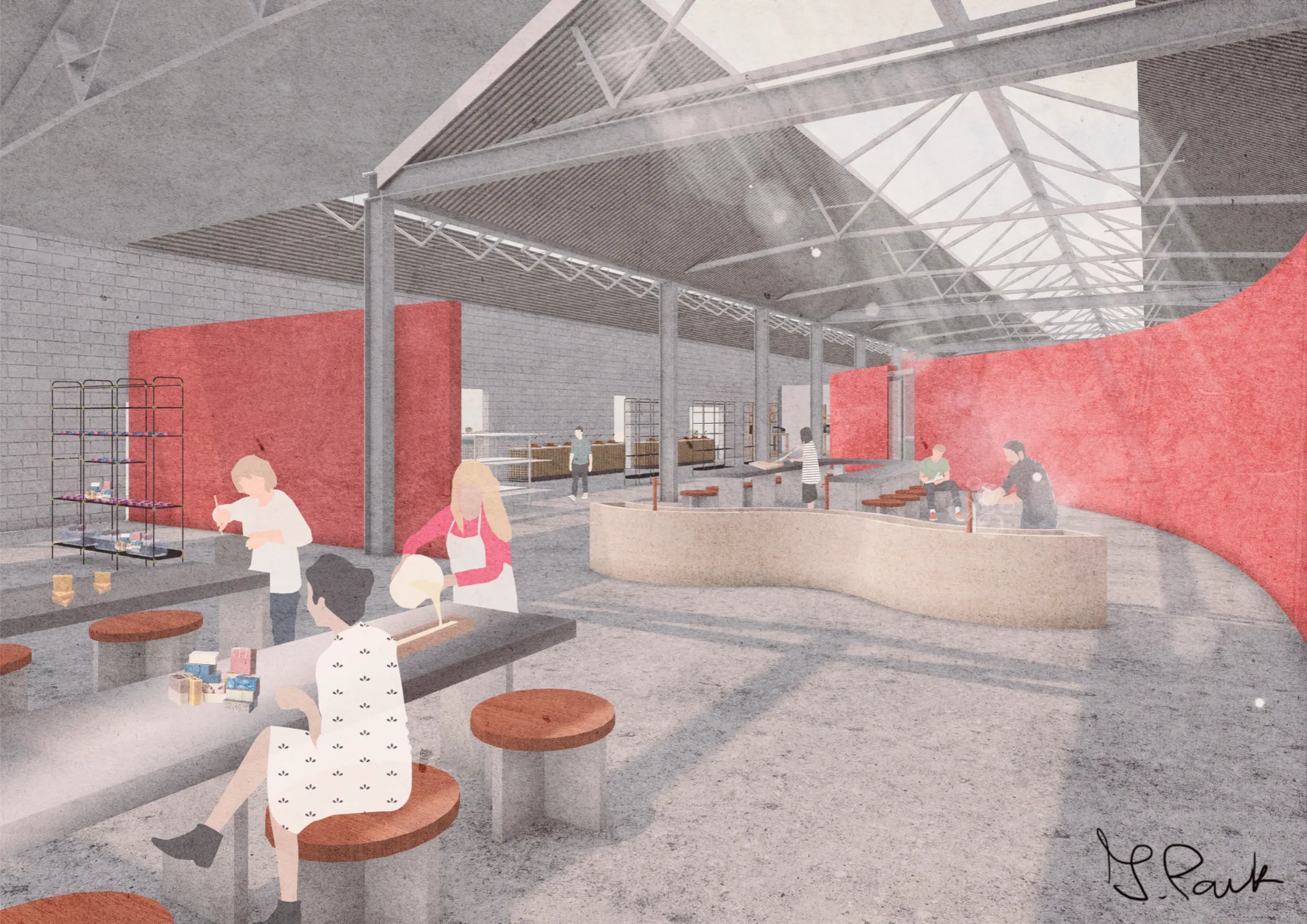 The project rebrands Chatham’s historic dockyard into a soap factory, bath, and handmade soap retail area, inspired by its rope-making history. A bottle-shaped hemp soap souvenir pays homage to hemp’s significance in the 18th-century rope industry while subtly addressing local issues. The transformation of the No.1 Workbase and Armour Plate shop into a contemporary soap factory blends heritage with modern functionality, aiming to evolve into a successful local cosmetic brand. The building will serve as a sustainable soap production centre and interactive community hub, promoting circular economy principles and climate awareness. Rebranded as ‘Chatham Bubble,’ the project aims to unite locals and visitors through soap making and inclusive bath experiences, fostering resilience and promoting mental well-being.