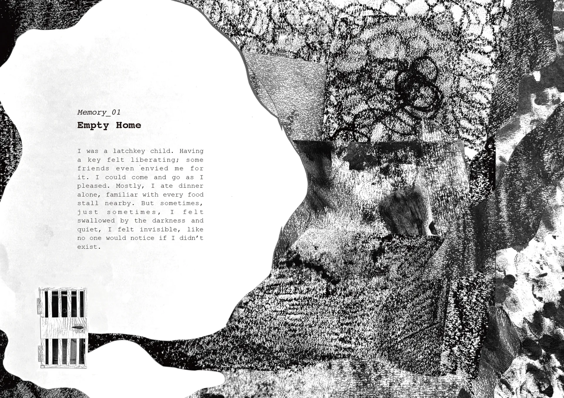 Memory Fragments explores the therapeutic potential of artistic expression in processing and transforming haunting memories, fostering emotional healing and connection between creators and viewers. Motivated by my lifelong feelings of displacement due to frequent moves and a complicated relationship with the concept of “home,” I aim to record these personal memories—both joyful and painful—and observe how art can transform them. Inspired by previous projects, which highlighted the importance of storytelling and collaboration, I opened this deeply personal project to the public. Initially focused on using illustration as a tool to process haunting memories, the project has evolved into a journey of simply reflecting on memories. I aim to create a platform where memories can be explored and recorded through collage, offering a universal means of emotional expression and connection.