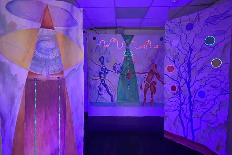 My work has an continue focus on the healing and spiritual impact of creating art. The background of my work is based on an understanding of Theosophy and Buddhism. On the technical side, I investigate colour as some form of optical ‘buzz’ in term of use combination of neon colour and ultraviolet light. to draw abstract symbols or patterns. By researching meditation as a global phenomenon, I practice the influence of meditation on contemporary art by combining the history and styles of meditation from the East and the West. Through my work I would like to show the diversity of meditative and spiritual concepts, such as paintings combined with the experience of optical perception.