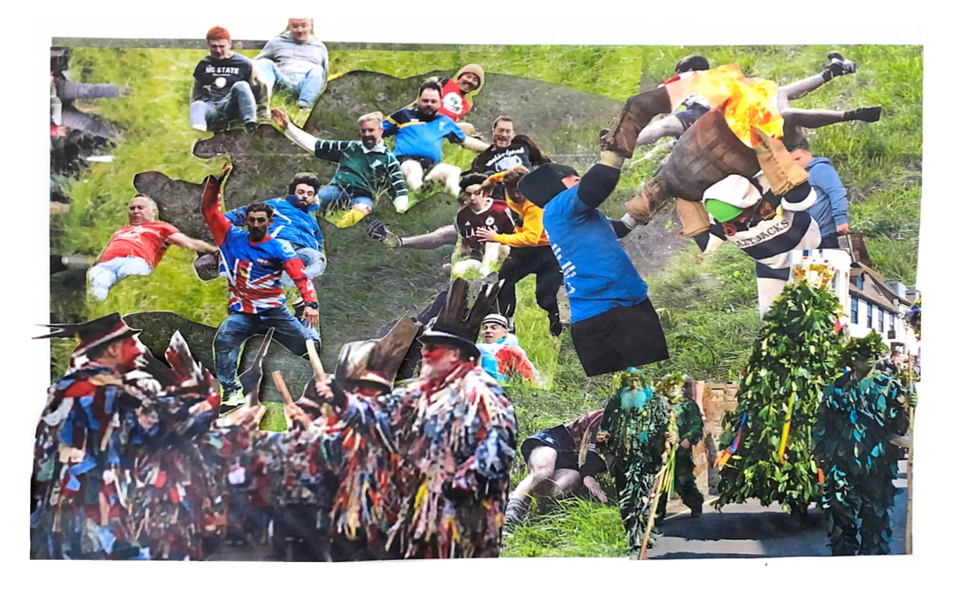Here I explored traditional English ceremonies and events and I collaged imagery to visualise their unique nature. Further on, I asked what words people associate with ‘England’ and responded with draping and designs. I also explored political satire and took inspiration from the show ‘Spitting Image’, to machine stitch certain British figures.