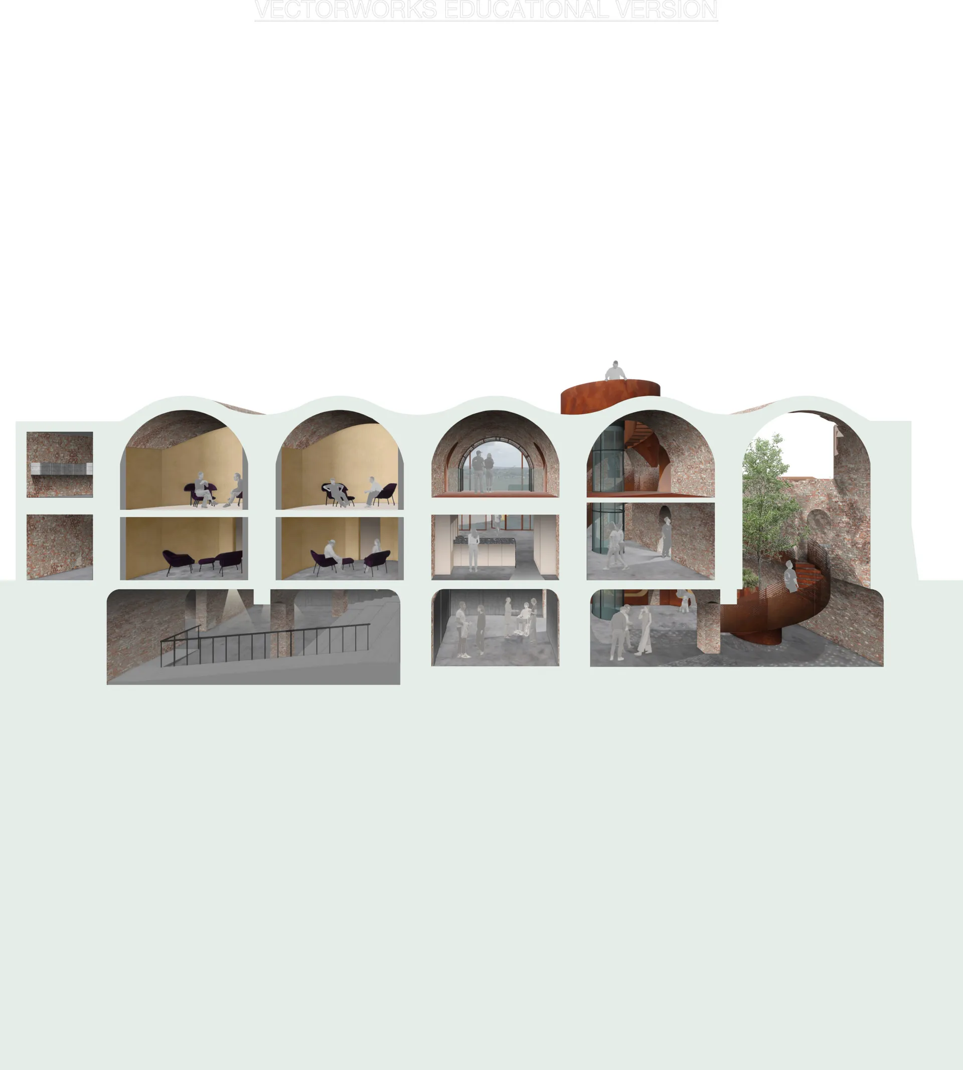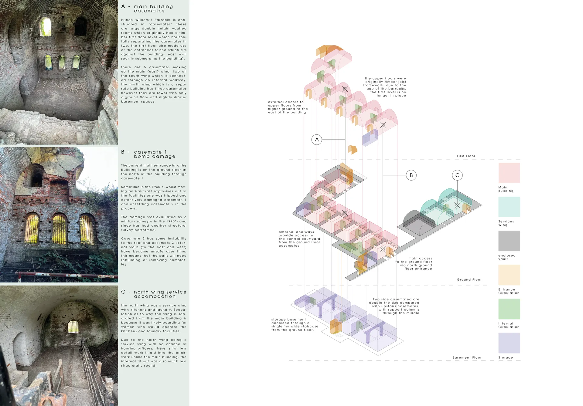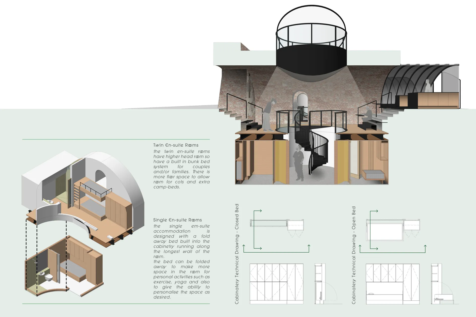 My proposal occupies Prince William’s Barracks, a building that was created to protect Chatham. My intention was to conserve and focalise the existing with minimal intervention and adopt sustainable methods, reusing materials taken from local redevelopment in and around Chatham.