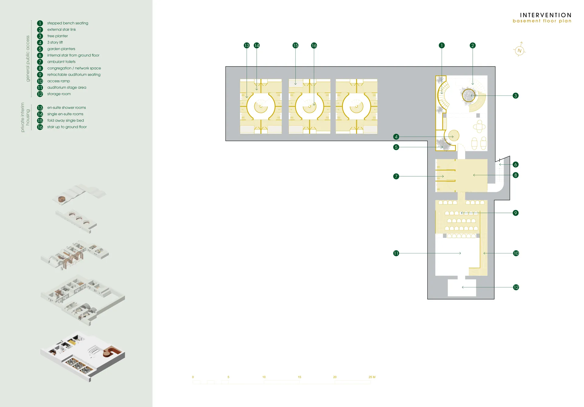 -drop-in kitchen, showering and postal facilities for homeless that cannot be immediately housed.