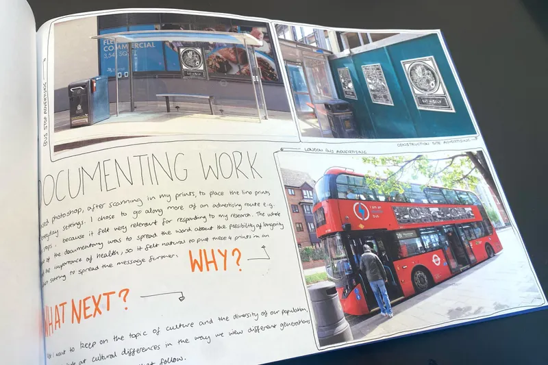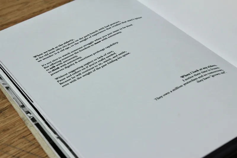 For my final FMP outcome I have made a book, accompanied my fragmented lino prints. Inside the book features street photography of people aged 60-90 and their honest responses to a list of questions discussing their lives. My lino prints are acting as their disorganised memories, illustrating certain events or achievements in their lives.