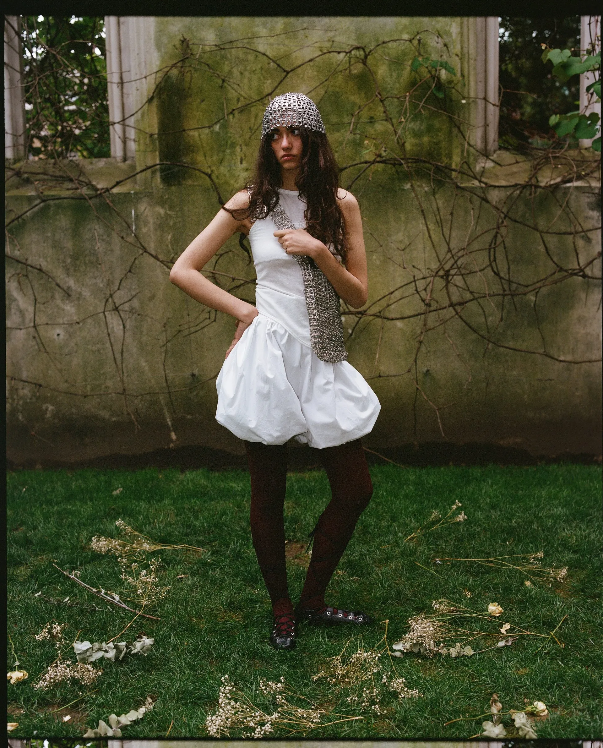 The project was oriented towards the creation of stylised looks symbolising the vulnerability of the damsel in distress, juxtaposed with more defensive elements evoking the imagery of the knight and the boxer. The collection embodies a fusion of resilience and elegance in each look.
