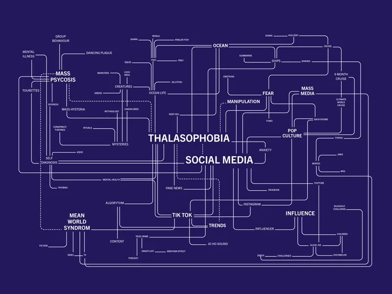My project started with an exploration of Thalassophobia, the intense fear of deep water, and why it affects many people. As I researched, I discovered that social media often amplifies or creates fears, making people believe they have conditions they don’t. This insight shifted my focus to how social media influences our perceptions of phobias and illnesses.