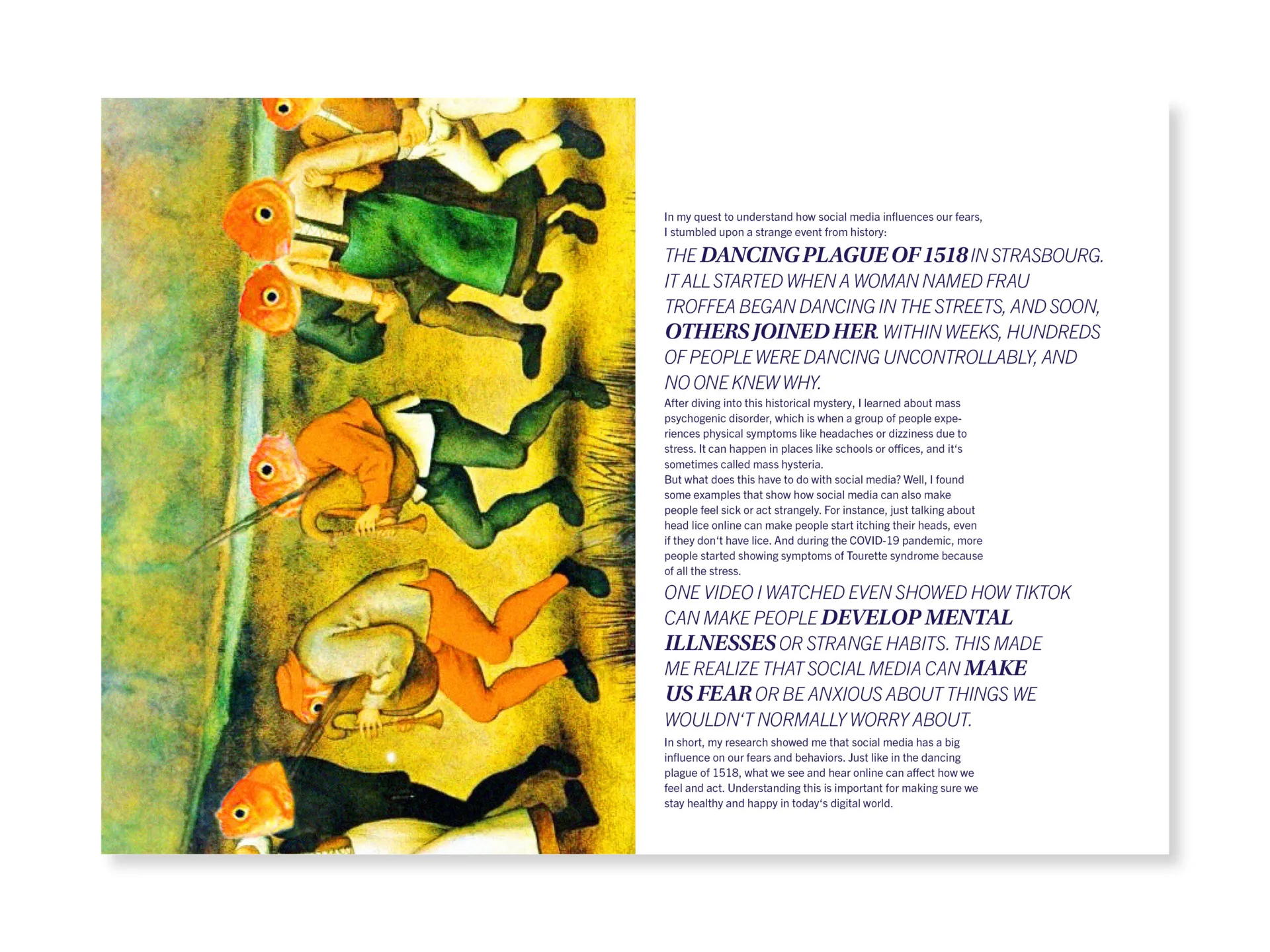 My project started with an exploration of Thalassophobia, the intense fear of deep water, and why it affects many people. As I researched, I discovered that social media often amplifies or creates fears, making people believe they have conditions they don’t. This insight shifted my focus to how social media influences our perceptions of phobias and illnesses.