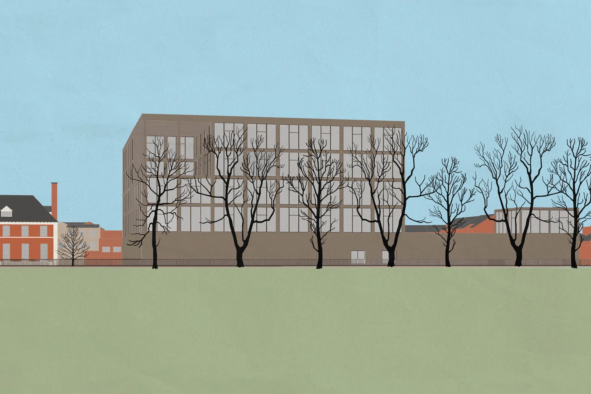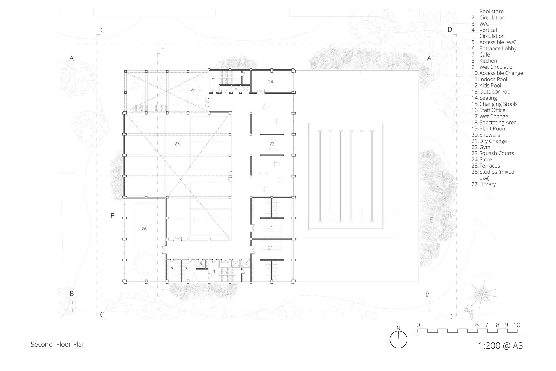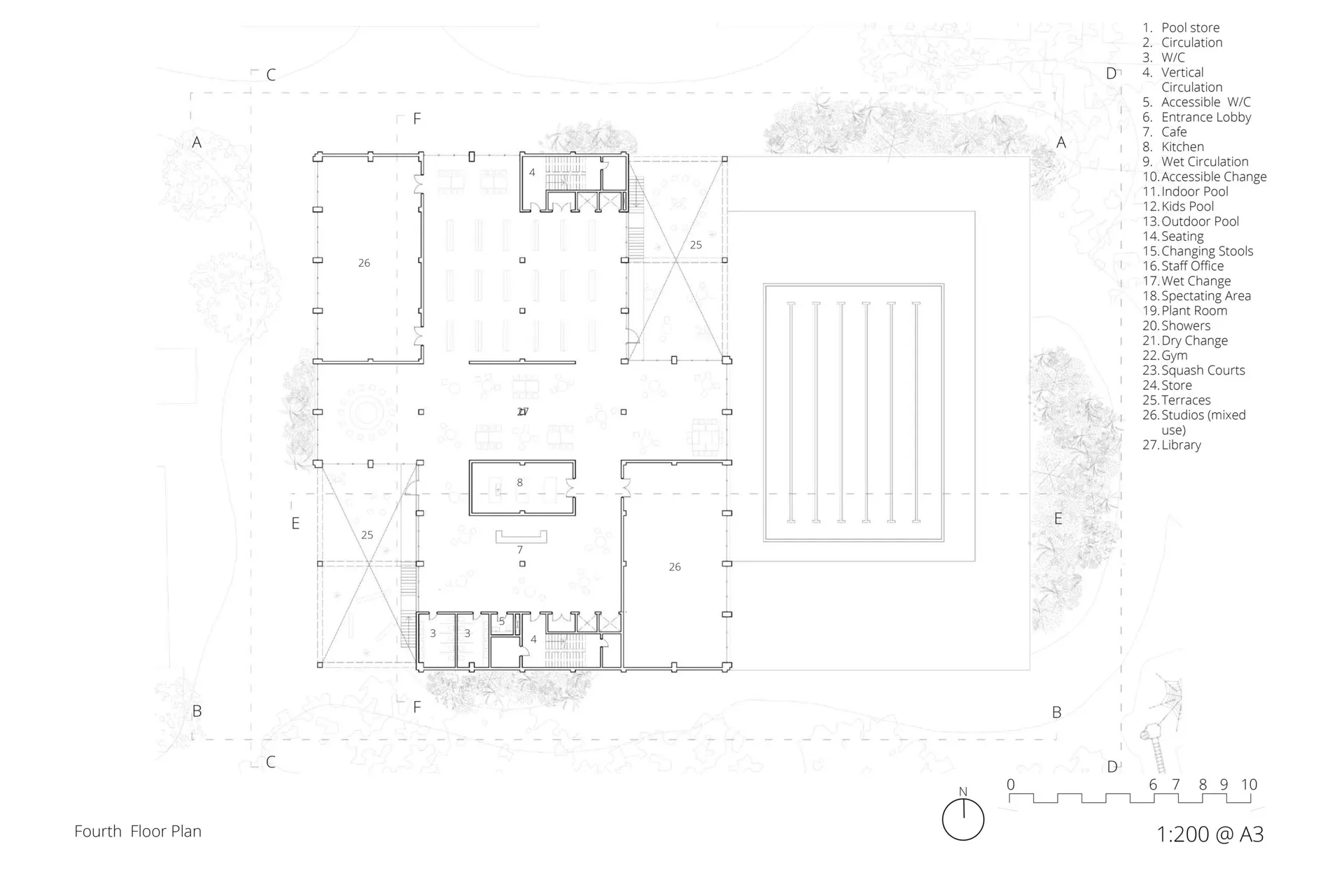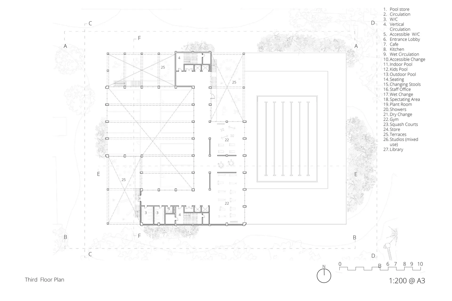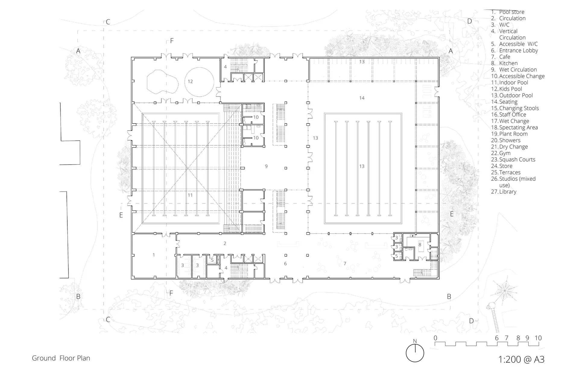 The main goal of this project was to design a building that supports physical activity and mental exercise, taking inspiration from Roman bathhouses. The new leisure centre will include sports halls, gym spaces, and mixed-use studios for teaching and learning.