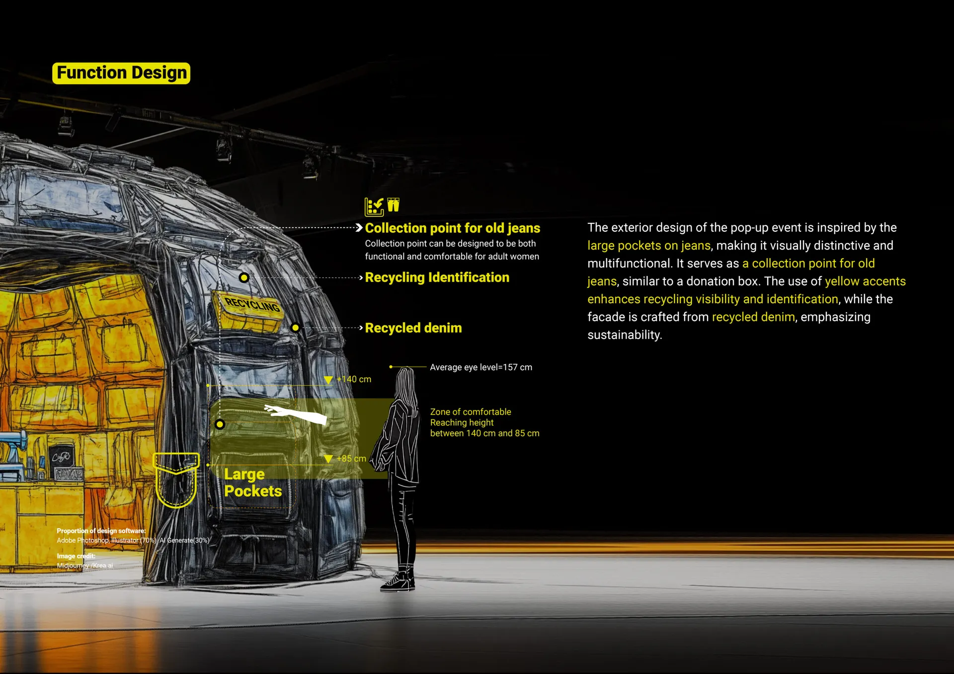 Re-Jeans is dedicated to mitigating the environmental challenges inherent in traditional denim production, specifically excessive water consumption and chemical pollution. The initiative aims to reduce the resources required for new jeans production by fostering denim reuse through dynamic events and repurposing existing materials into innovative products. By collaborating with communities and industries, Re-Jeans promotes a circular economy, advocating for reduced consumer consumption and optimising denim fabric utilisation to achieve zero waste. This approach transforms the fashion industry through sustainable design interventions and benefits consumers with economical, unique, and durable products.