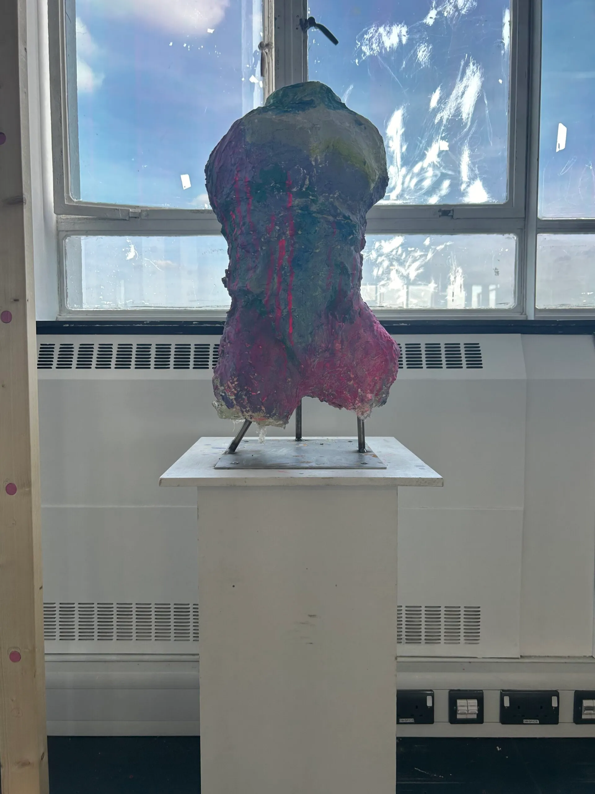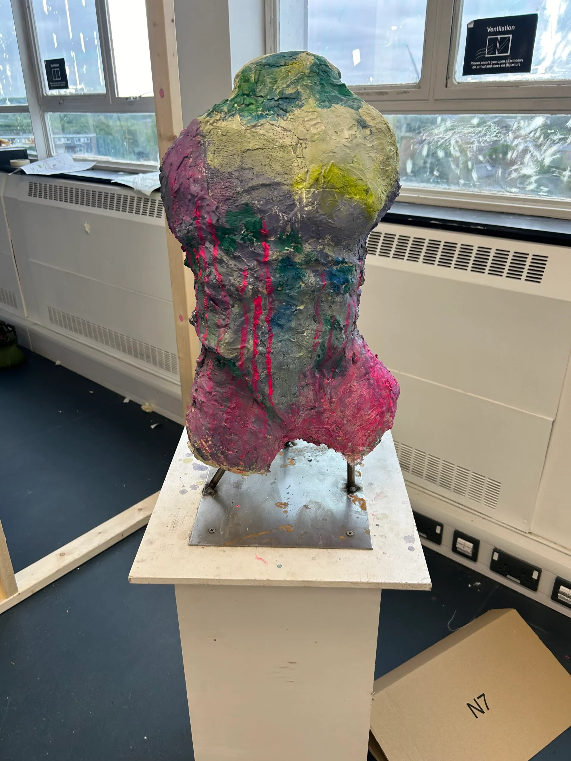 The sculpture project aimed to create a contemporary interpretation inspired by classical Greek sculpture while infusing it with the energy and intensity of boxing. Departing from the traditional stone medium, plaster was chosen for its versatility and textural potential. Bright colors were incorporated to symbolize the adrenaline rush inherent in boxing, while a broken section emphasized the sport’s physical and emotional intensity.