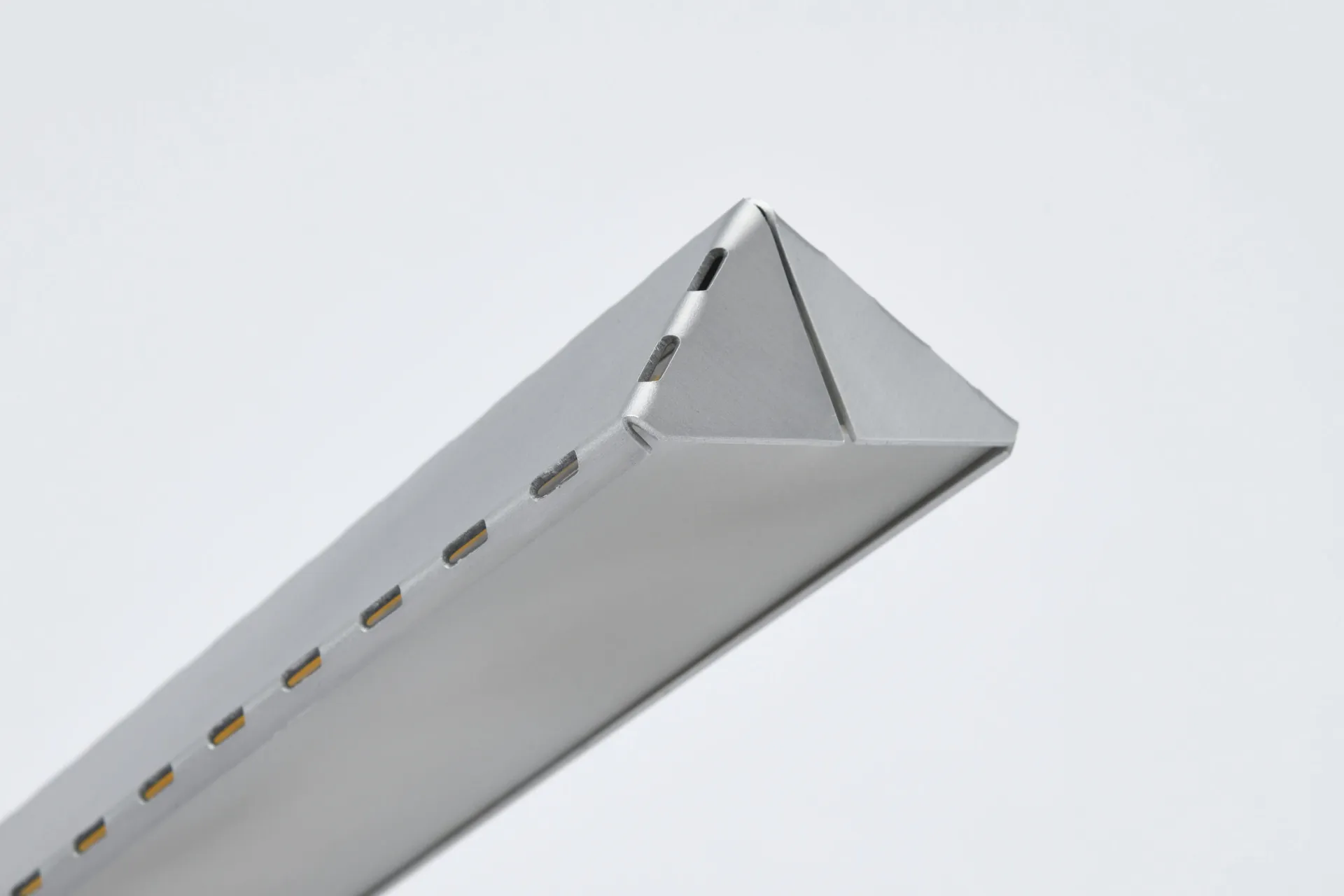 This project was a deep dive into the added benefits of using perforations in folded sheet metal, to attempt to highlight and utilise any specific findings uniquely and creatively. My research showed clearly that the use of perforations would be best emphasised through the use of light, as seen above.