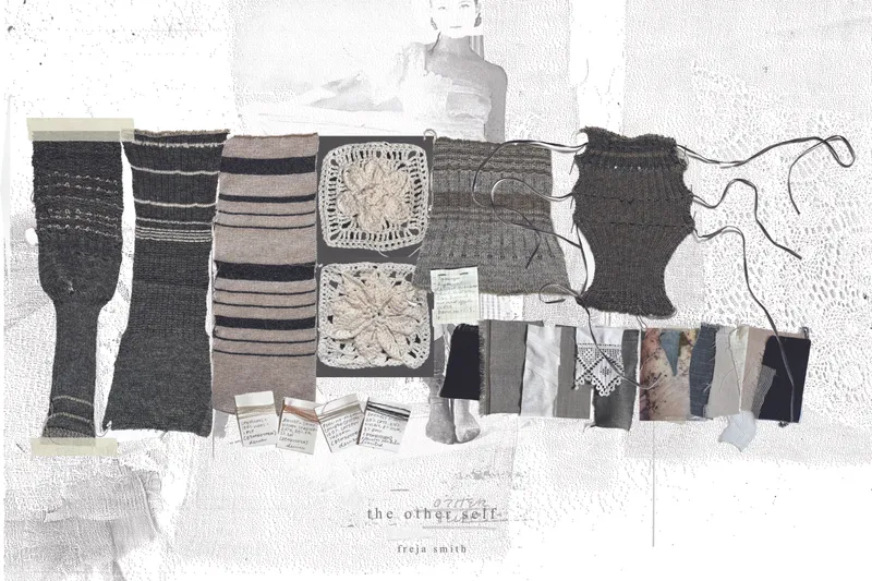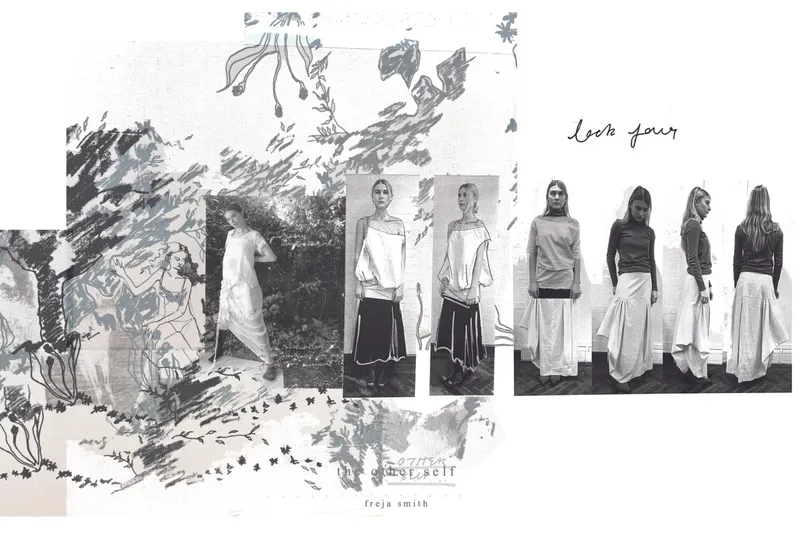 The silhouettes throughout have an asymmetric, draped quality that reference this idea of wandering and getting snagged on branches. Knit has been an interesting medium to achieve these shapes through. I have also developed my original illustrations into screenprints to convey this narrative.