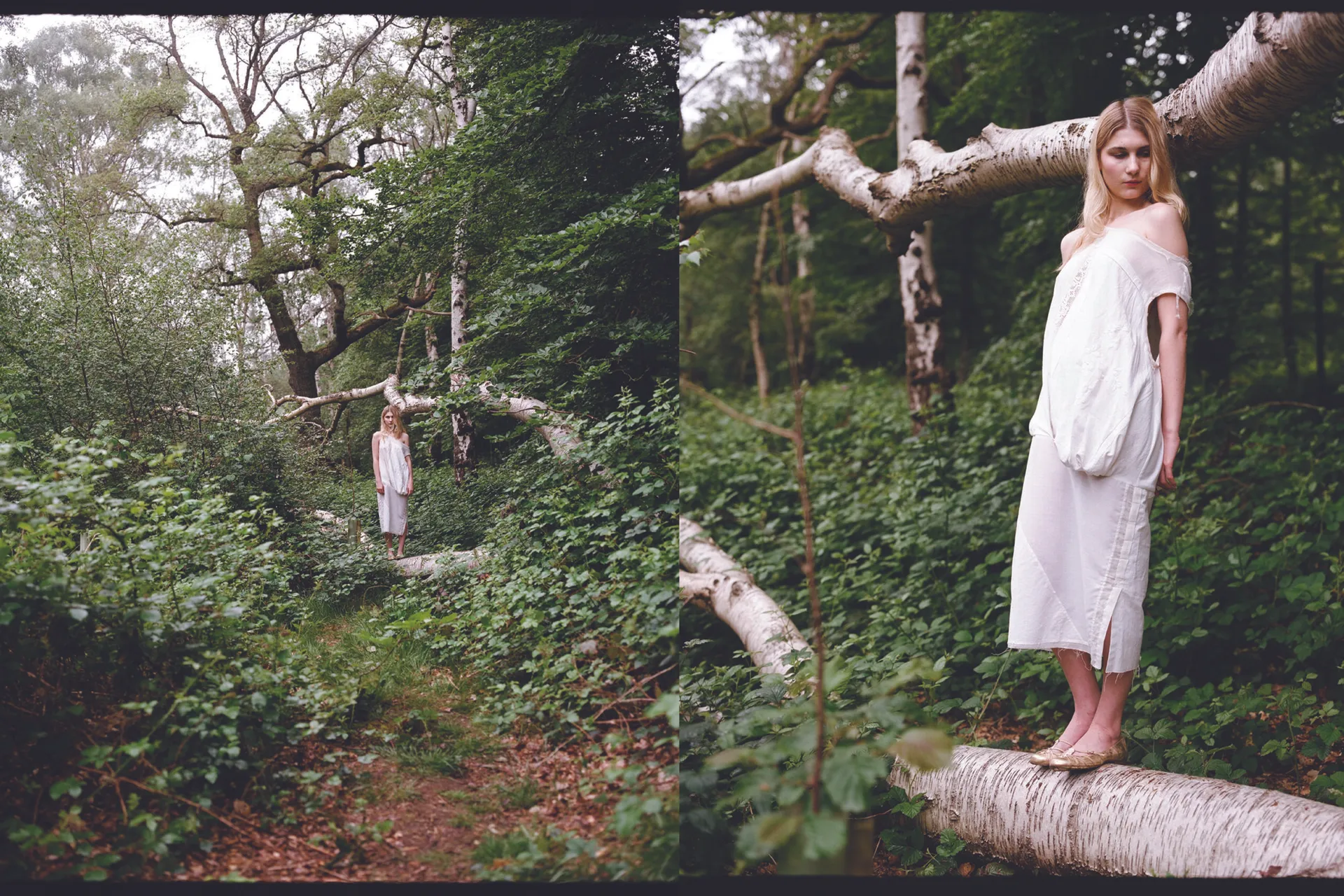 The silhouettes throughout have an asymmetric, draped quality that reference this idea of wandering and getting snagged on branches. Knit has been an interesting medium to achieve these shapes through. I have also developed my original illustrations into screenprints to convey this narrative.