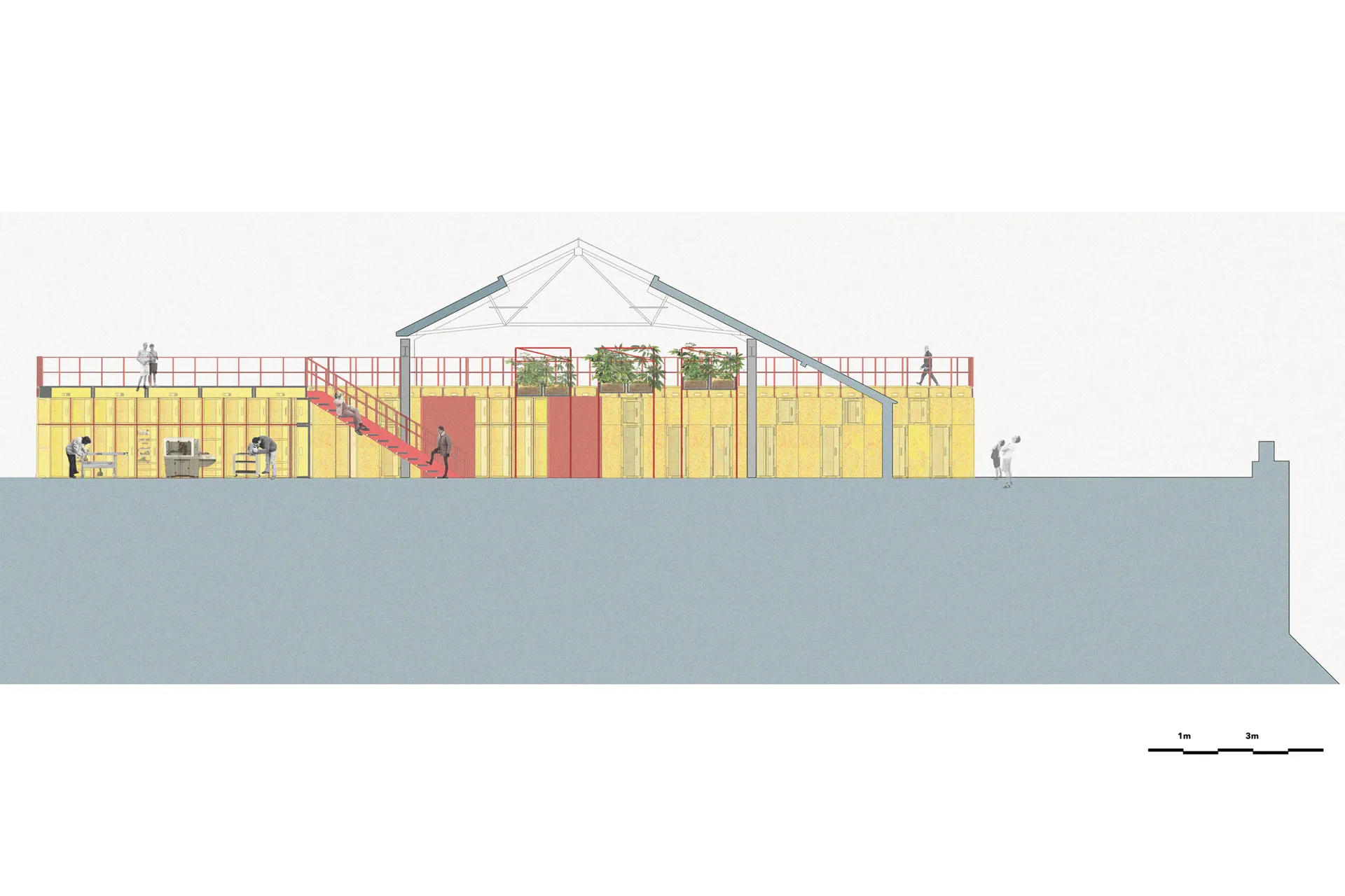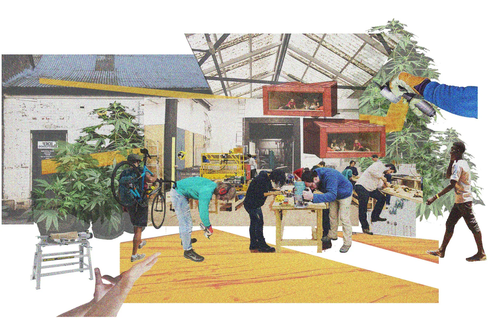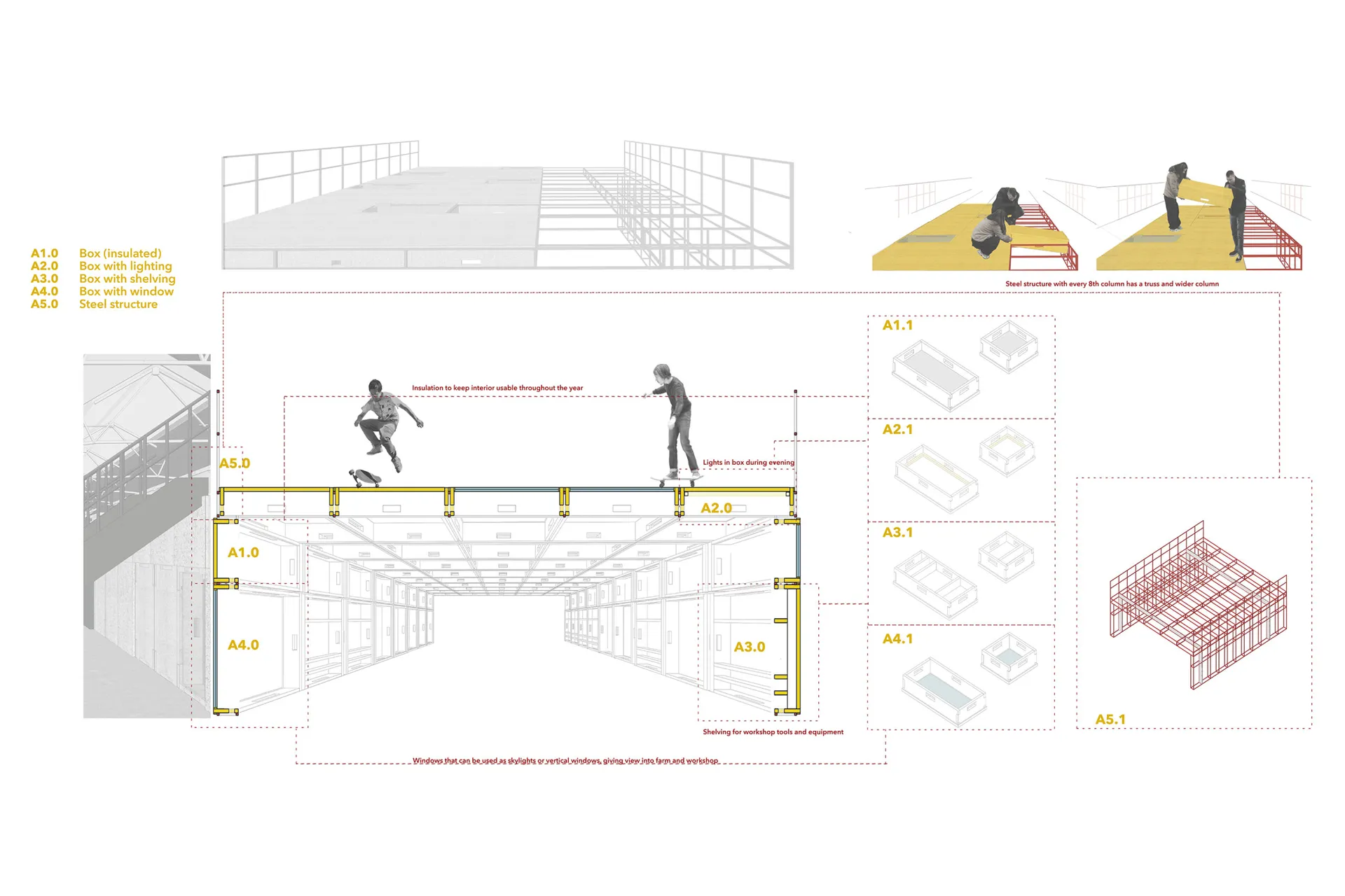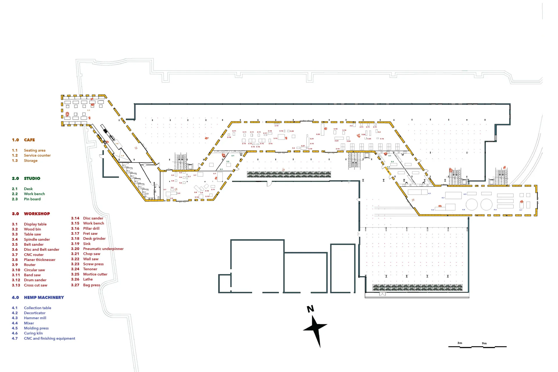 The Chatham hemp workshop introduces the community to hemp through farming the material on site. The building is open to the public, allowing for free socialising, exercise and activities, in hopes to provide the Chatham community with an accessible public space. The hemp plant farm and workshop will show the possibilities of the plant and the process of harvesting the plant into wood – seeing the product from start to finish. Courses will be taught in the workshop that focus on creating modular systems including tables, seating, plant containers and storage using hemp shiv sheets, creating employable skills for the youth community. The modular systems created could be used to fit out empty lets in Chatham, provide seating in public spaces and greenery for the city centre, with access to repairs at the workshop. The whole space is built using the modular system, showing public how accessible and usable the material is. The space will profit through selling the hemp wood systems at an affordable price, as well as through renting out studio spaces to young creatives.