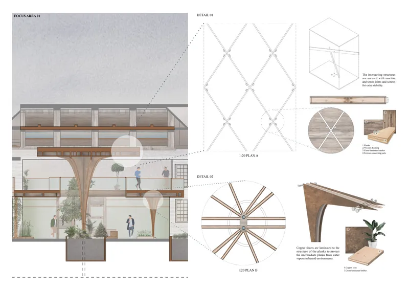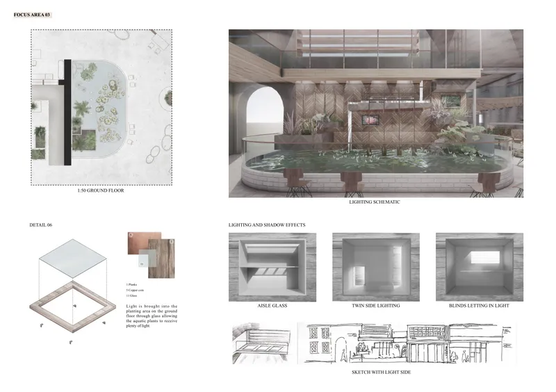 improve the environment, and in between the river was heavily polluted so through The design uses the roof structure to collect rainwater to irrigate the plants. We were also