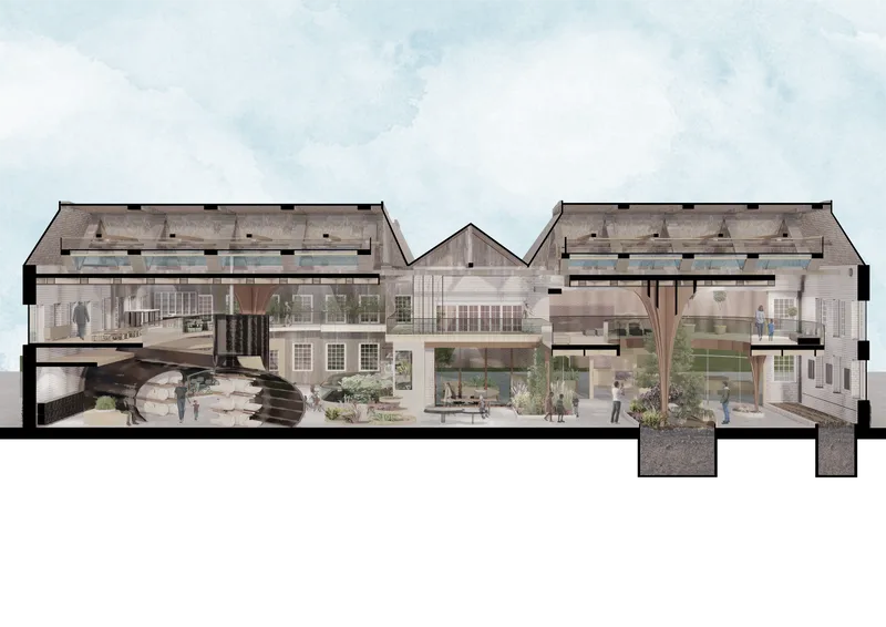 The project hopes to blur the boundaries between indoor and outdoor to create a “natural” indoor space. Based on the results of a survey of local residents, I characterized the