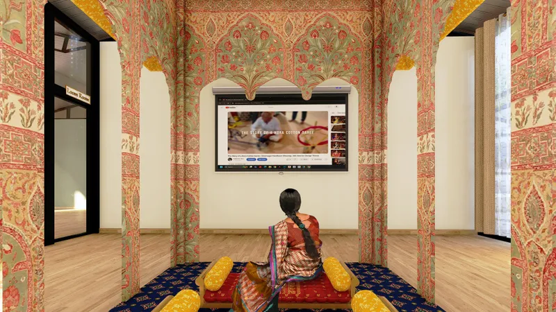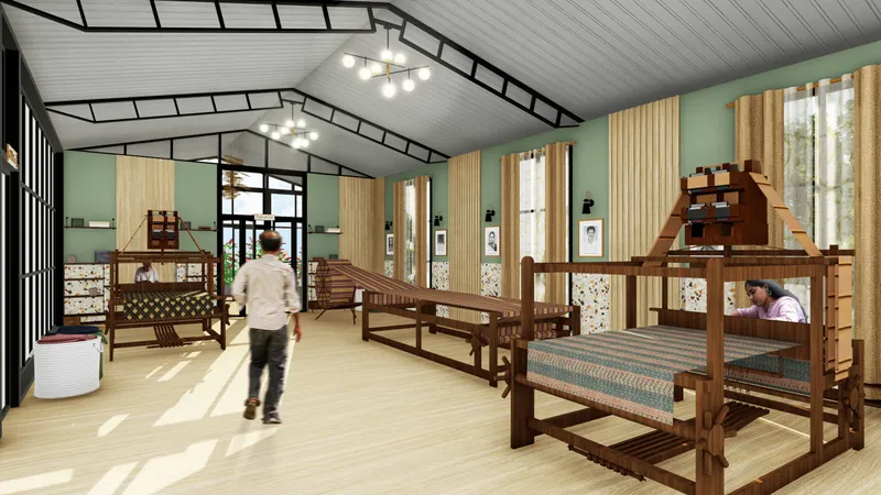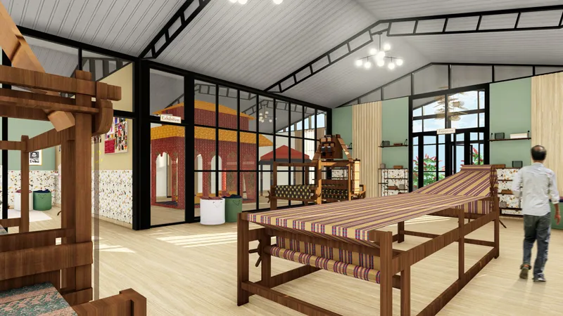 For centuries, handloom weaving has been used to weave traditional outfits in India. Handwoven fabric serves as a powerful tool for storytelling and expression. The decline of traditional handloom weaving is due to low wages from middlemen and competition from mass-produced goods. Weavers tend to push their children to seek higher-paying jobs, further contributing to the decline of the art. This project aims to preserve this legacy by incorporating handwoven fabrics into modern interiors. The first element is a training and workshop facility that transfers knowledge through live project engagement under the guidance of a master weaver. The second element is an Interactive public installation that explores weaving as an architectural element, extending beyond its traditional role as a textile craft. Traditional weaving is combined with modern technology to revive and expand the practice into multidisciplinary fields, exemplified by the third element which is a fabric wall hanging used for wall paneling.