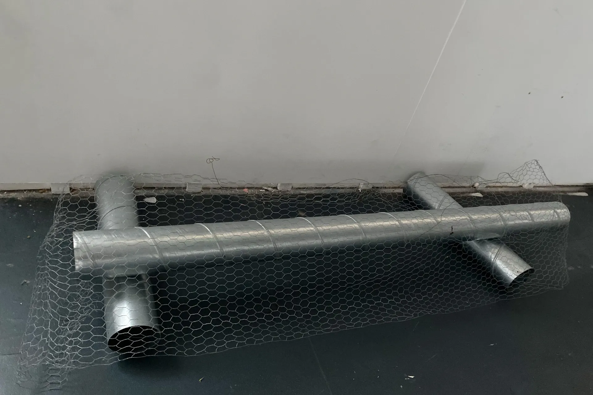 My final piece criticises the othering of nature and the human bigotry that enables people to believe that are they are superior to non-human living things. Comprised of a sewer-system sculpture built from second-hand scaffolding pipes, examining the relationship between our containers of waste and the animals we regard as such.