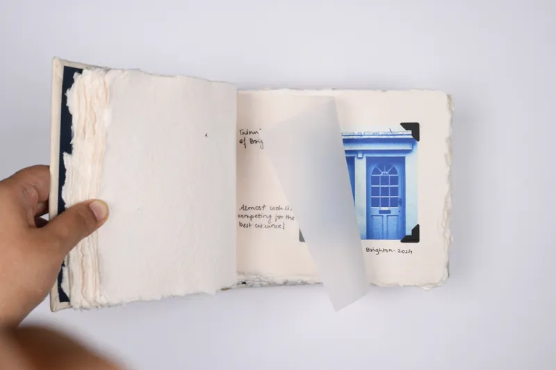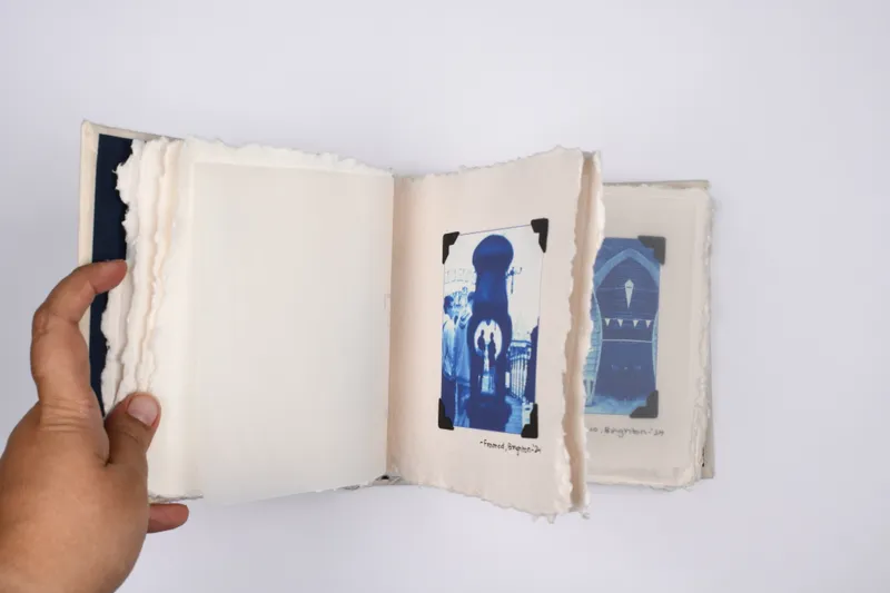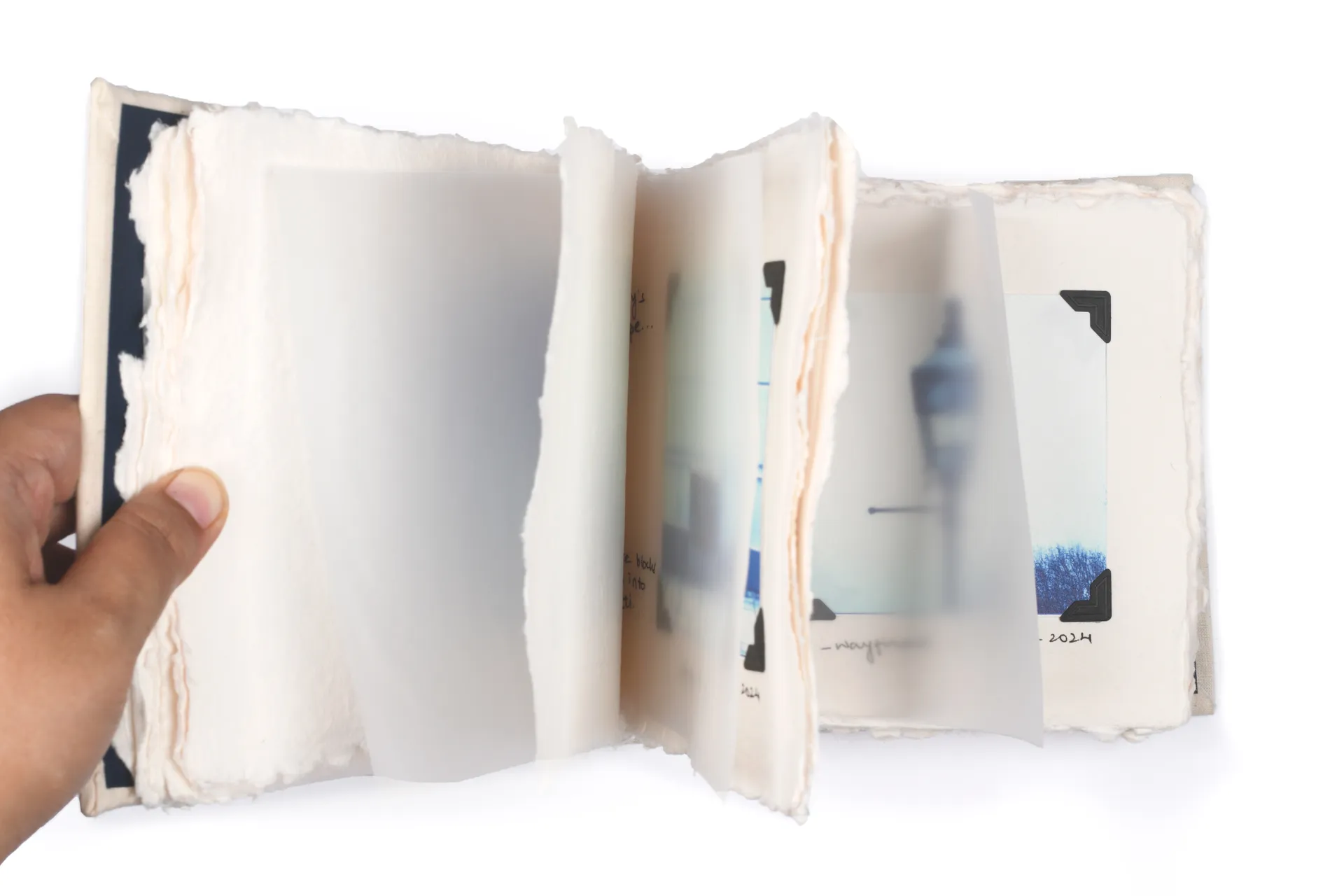 In order to capture the simple, fleeting moments that often go unnoticed in our busy lives, the project focuses on preserving them as memories. It doesn’t always have to be family or close friends; it can be a brief exchange with a stranger or a small interaction that changes how we look at the world. Each person sees the world in a unique way, and the book offers a collective space where people can reflect on their own experiences, share their own work, and appreciate different perspectives. With the use of the cyanotype print method I have brought this project to life, an ongoing series to give it the haptic blues.