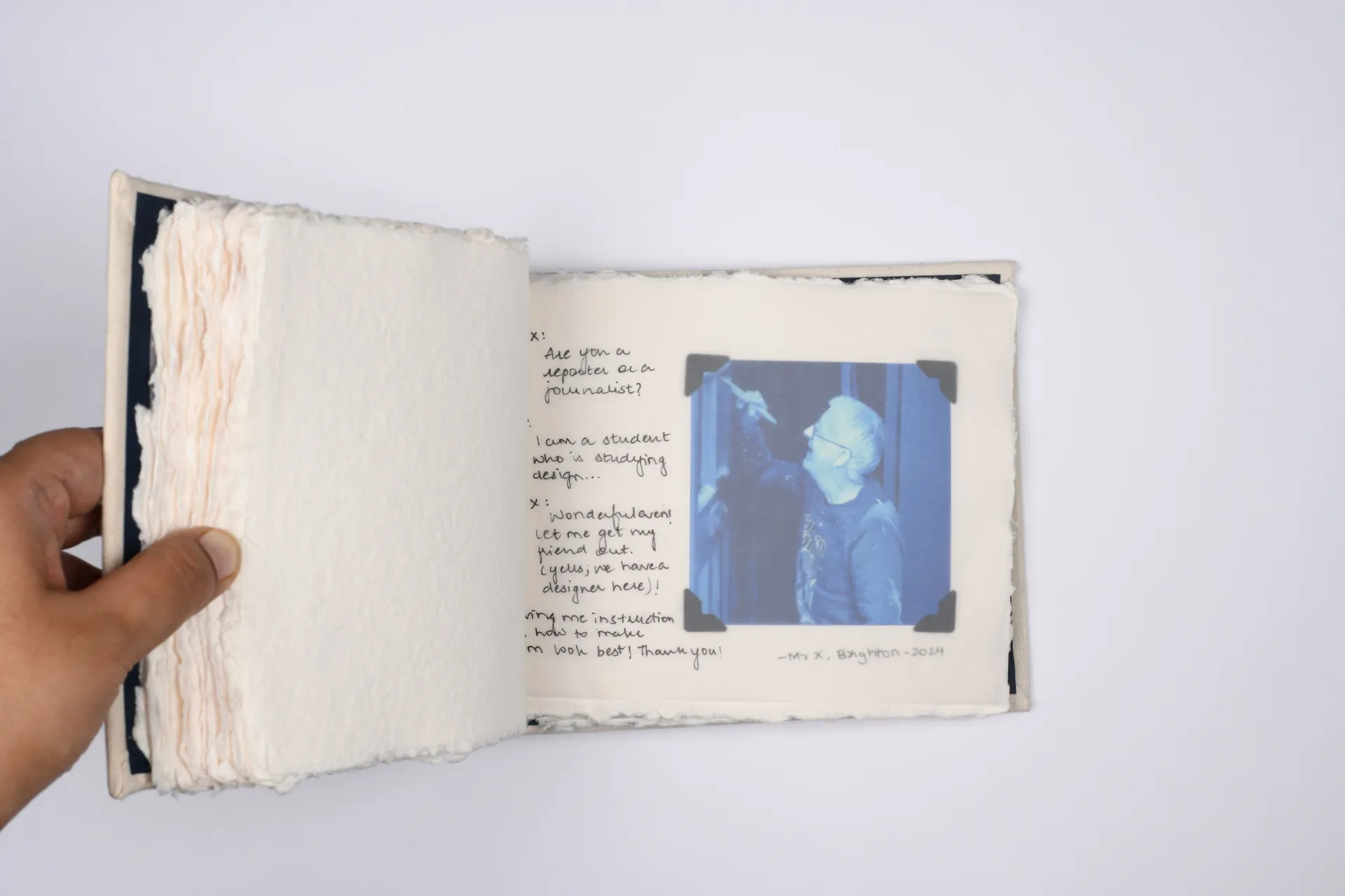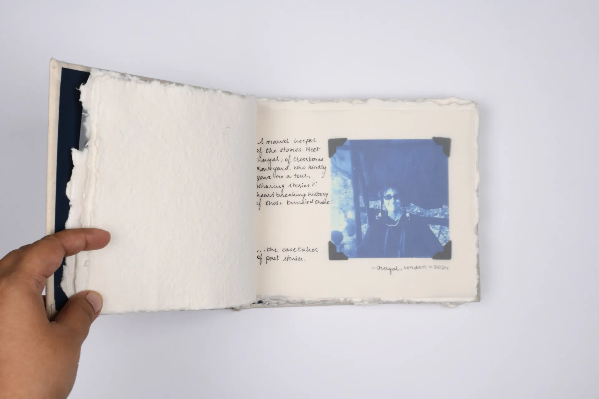 In order to capture the simple, fleeting moments that often go unnoticed in our busy lives, the project focuses on preserving them as memories. It doesn’t always have to be family or close friends; it can be a brief exchange with a stranger or a small interaction that changes how we look at the world. Each person sees the world in a unique way, and the book offers a collective space where people can reflect on their own experiences, share their own work, and appreciate different perspectives. With the use of the cyanotype print method I have brought this project to life, an ongoing series to give it the haptic blues.