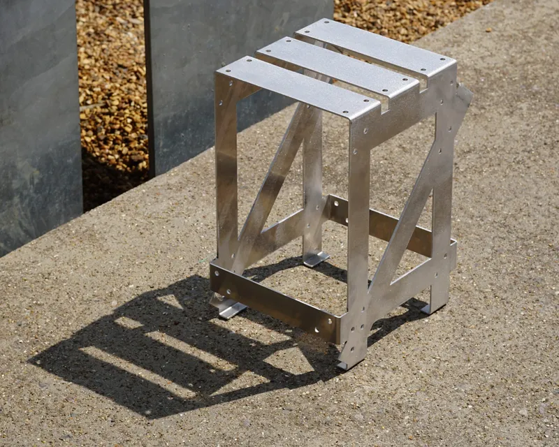 The ISO Series is a three-part collection of CNC-punched and folded sheet-metal furniture, suitable for both domestic and outdoor use.