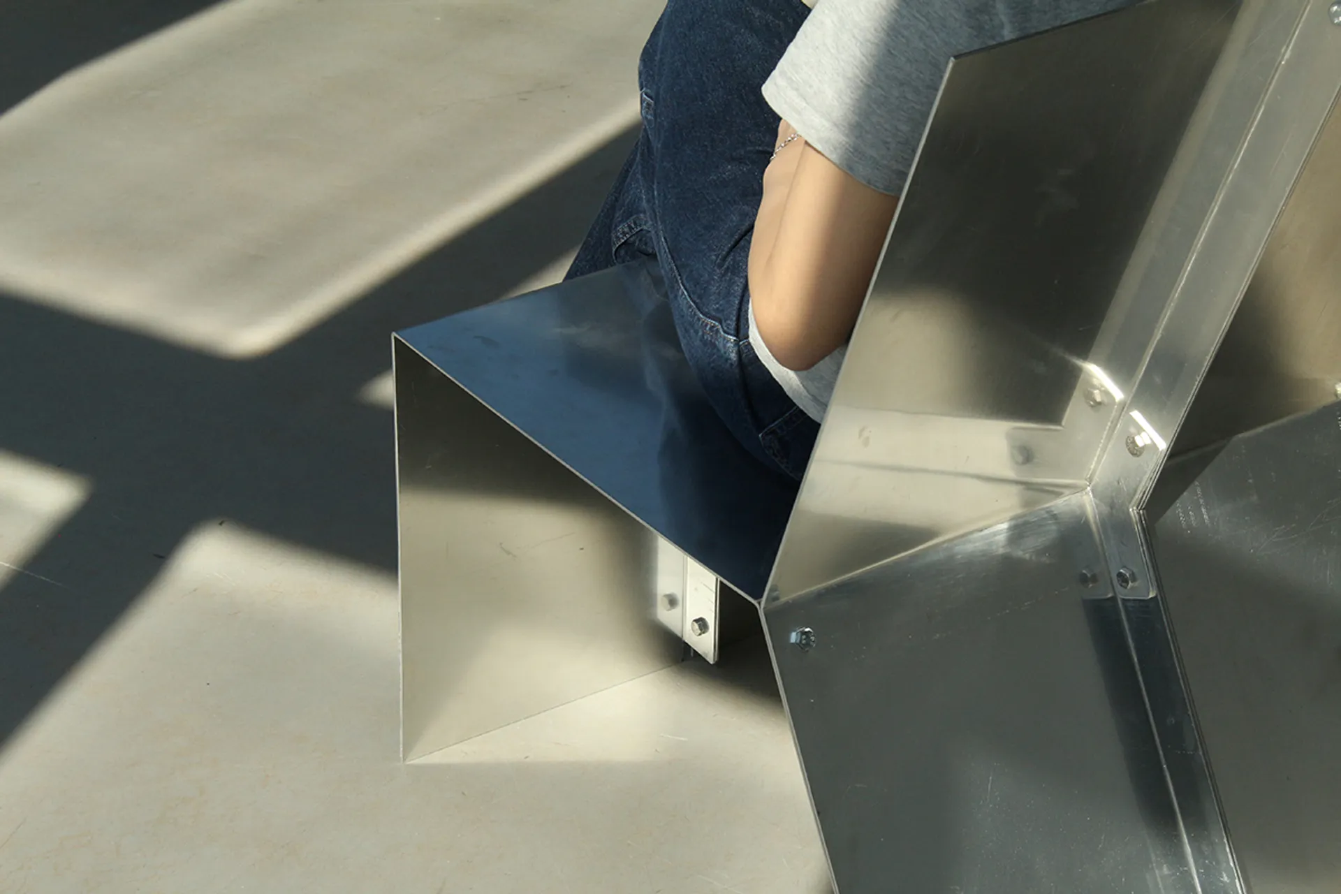 The form as a four-part chair was a choice to add more depth to the design while still maintaining structural integrity. Using the construction through nets and connecting each section with bolts and brackets further enhances the chairs durability, strength and the longevity of the material chosen.