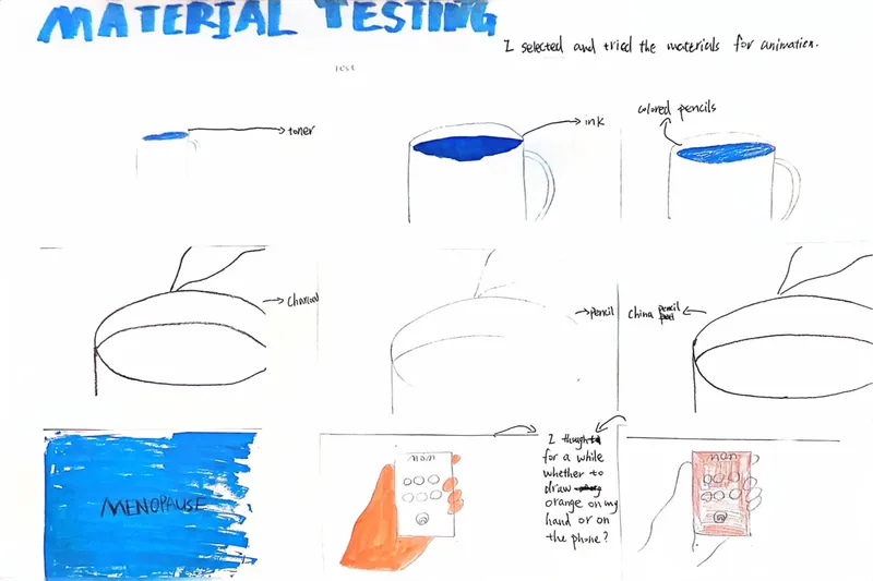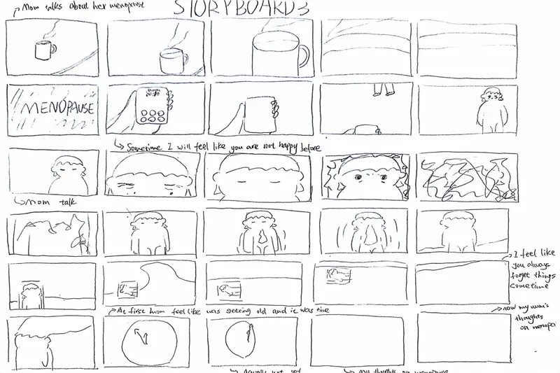 The project revolves around women’s menopause, which is a natural life cycle, but public misunderstandings about menopause make women more anxious and nervous during menopause. I wanted to use my conversations with my mom about menopause to illustrate the symptoms and psychological changes that women face during menopause. My mother and I represent women at two different stages. I represent people who have not yet gone through menopause, and my mother represents people who are going through menopause. I want to use these two perspectives to express how different people feel about menopause. And I want to use this animation to show the changes in menopausal women’s mentality when facing menopause, from anxiety to acceptance to relief. I want to use the changes in the characters in the animation and my visualization of menopausal symptoms to allow people to more intuitively feel the feelings that menopause brings to women. I also hope that women who are going through menopause can empathize with them. Let’s learn more about what menopause is really like. I hope more people can understand menopause and pay attention to and understand menopausal women. I hope to encourage more women who have experienced menopause to boldly share their experiences, express their worries, and reduce anxiety about menopause.