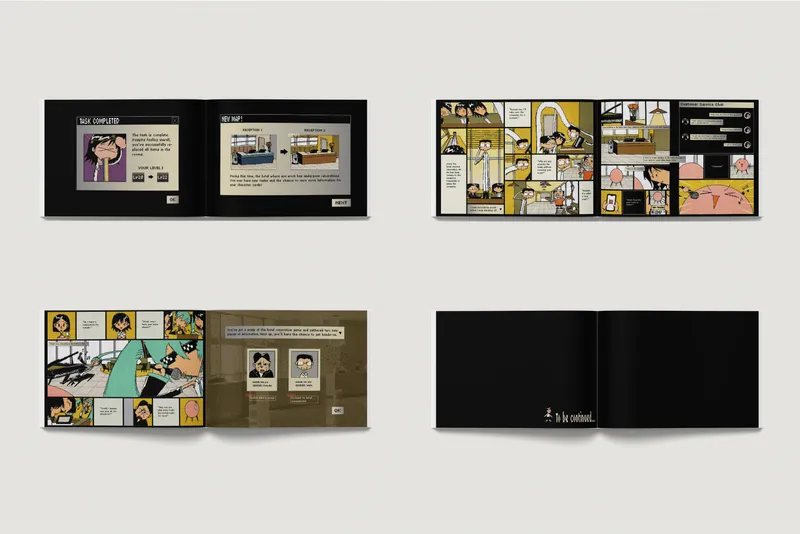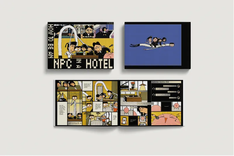 “How to Be an NPC in a Hotel” is a pixel art style comic. In July 2023, I began my internship at the front desk of Madison Hotel, which turned out to be an interesting and unforgettable experience. The front desk job was very busy; in addition to greeting guests, we often helped out in various departments. This gave me the opportunity to observe the hotel’s operations and discover some mysterious corners and strange passages within the building. I felt like I was in a game, pretending to be an NPC serving the guests, gradually gaining experience and leveling up. As an experimental attempt, I illustrated a few memorable stories and combined them with an 8-bit game style, hoping to showcase my perspective in this way.