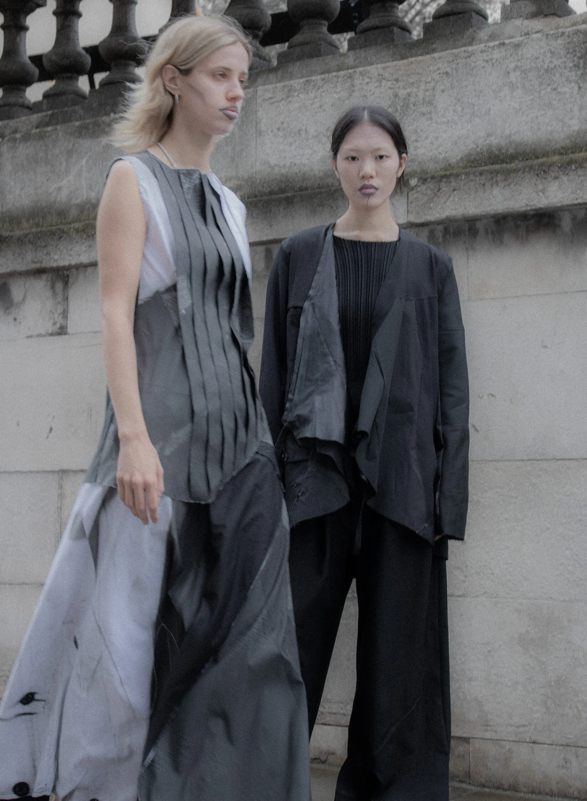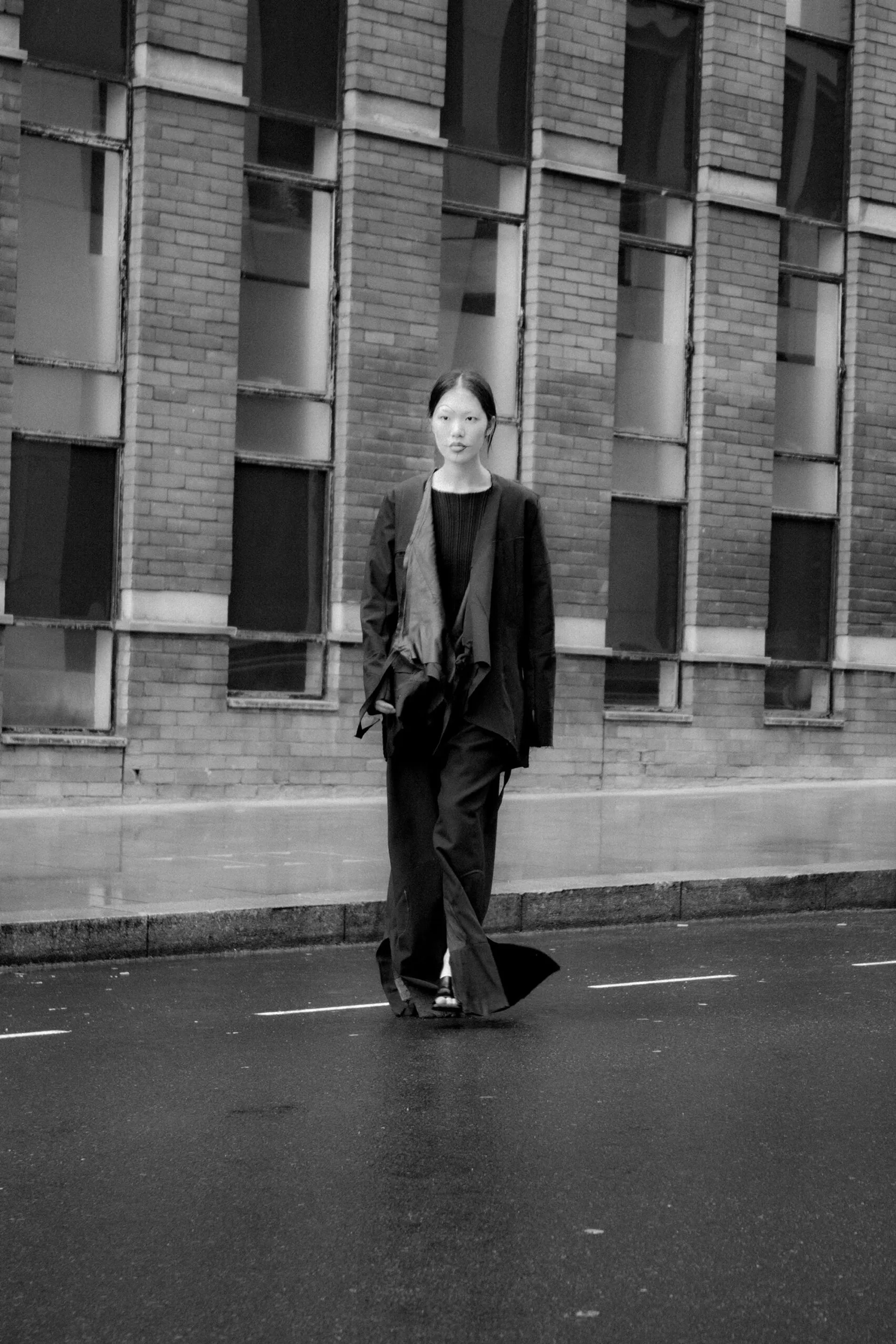 Sustainable up-cycling processes heavily informed the collections experience of transforming harsh tailoring into softer, wearable and fluid clothing that goes between day and night, work and leisure, in search of a balance of lifestyle.