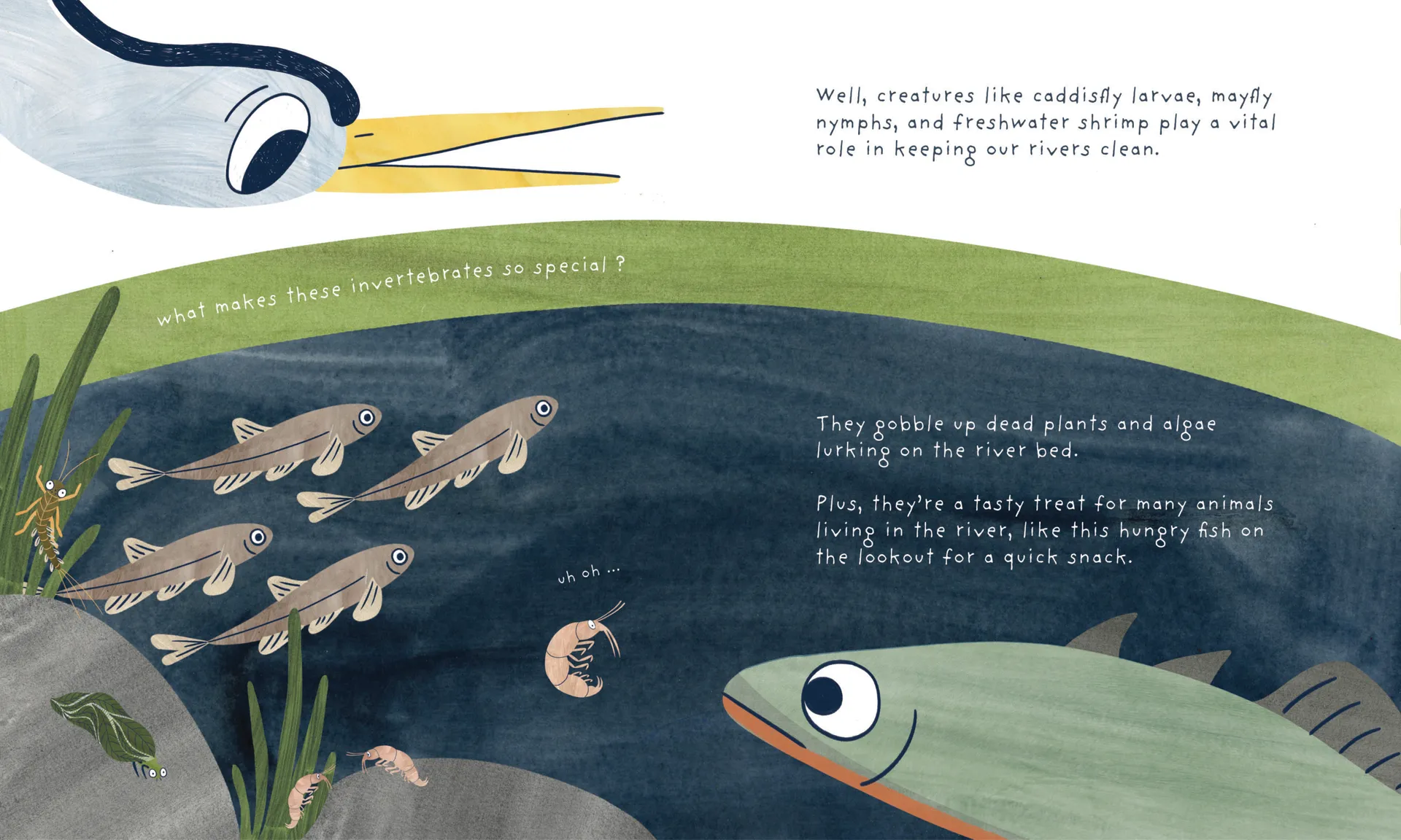 Herbie the heron introduces children aged 4-7 to three of the most important river invertebrates which are measured by scientists every month (the RMI score) and sustain the entire river ecosystem !