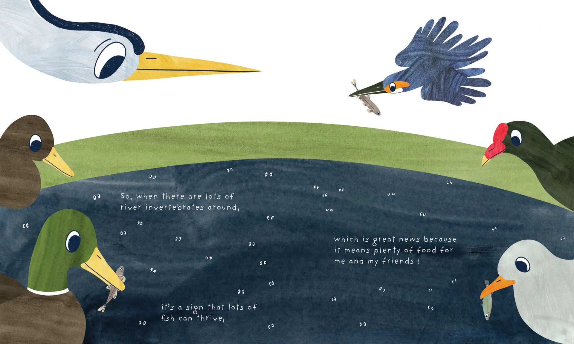 The aim of this book was to celebrate our local biodiversity, to engage children in animal conservation and promote awareness of how pollution affects the wildlife that lives near rivers. I worked closely with scientists and environmental workers from the Kingston Biodiversity Network and the South East River Trust to find a topic which is under-represented in children’s illustrated books.