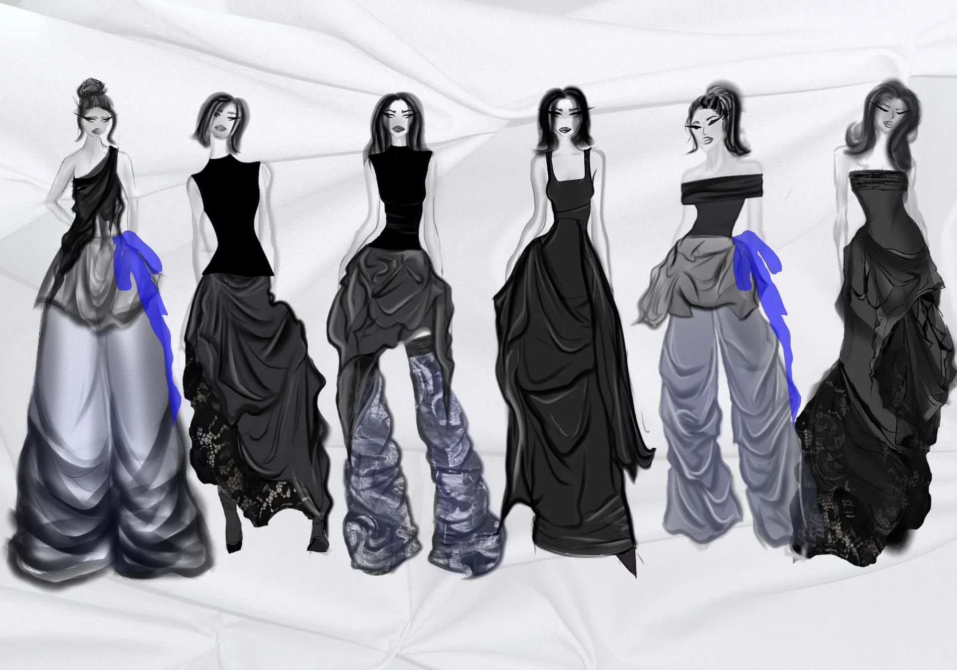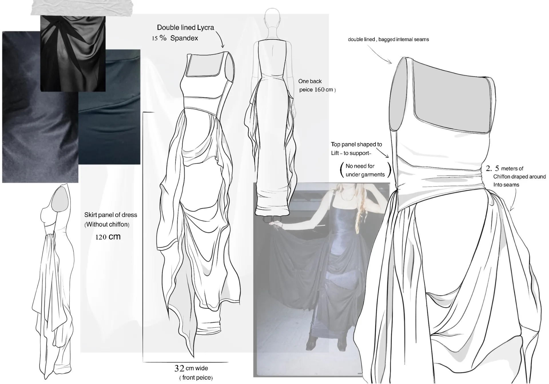 I Am a Fashion BA Hons undergraduate and my final collections encompasses my love for drape and womenswear , combined with a background of painting and digital design I created my final collection ‘F1 Girlfriend’.