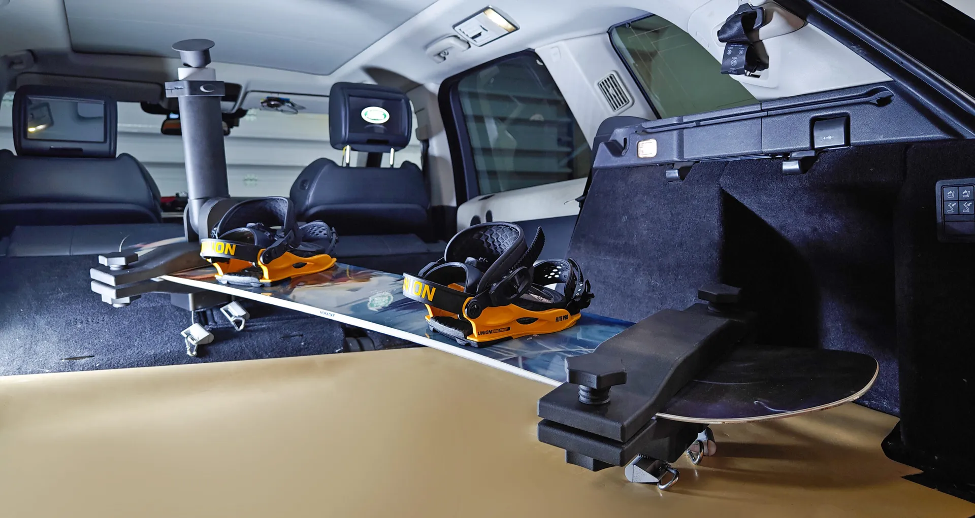 SafeSki Stow offers secure in-car snowboard mounting to enhance safety, convenience, and the overall skiing experience with its practical design.