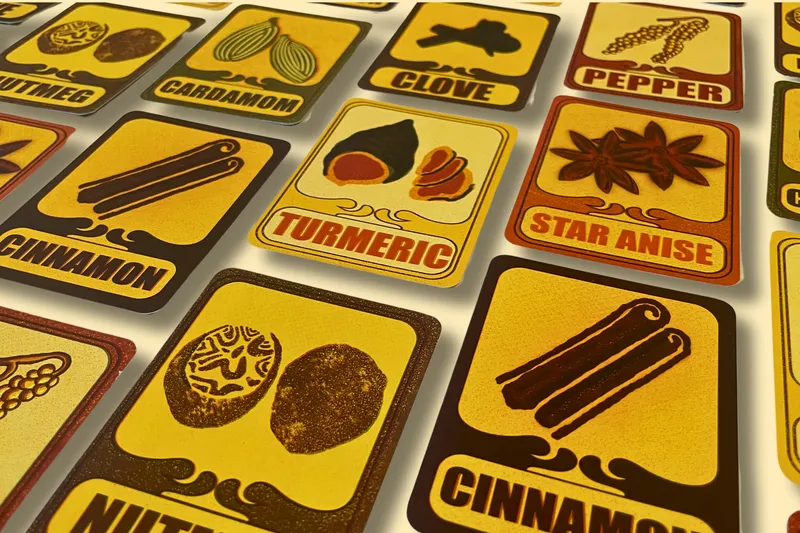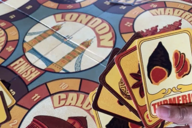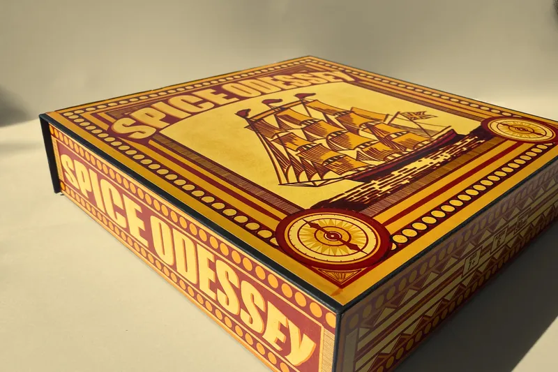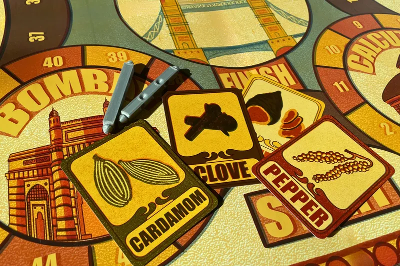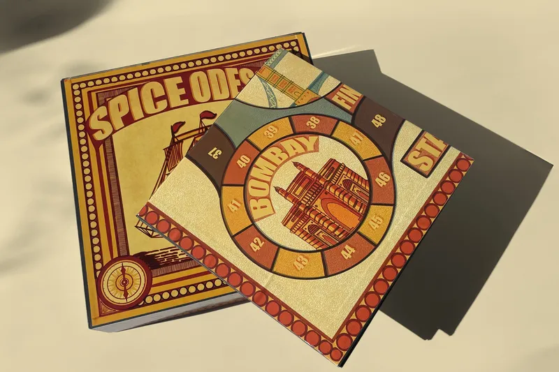 Spice Odyssey is a captivating board game that explores the historical spice trade between India and the UK during British rule. Inspired by the book “Curry: A Tale for Cooks and Conquerors,” the game immerses players in the vibrant world of Indian spices. Players navigate through key ports—Malabar, Madras, Bombay, and Calcutta—trading spices and making their way to London. The game’s visuals, created using a tricolor approach with red, blue, and yellow, draw inspiration from matchbox illustrations and employ Resograph brushes for a unique aesthetic. Spice Odyssey combines historical context with strategic gameplay, offering an engaging and educational experience.