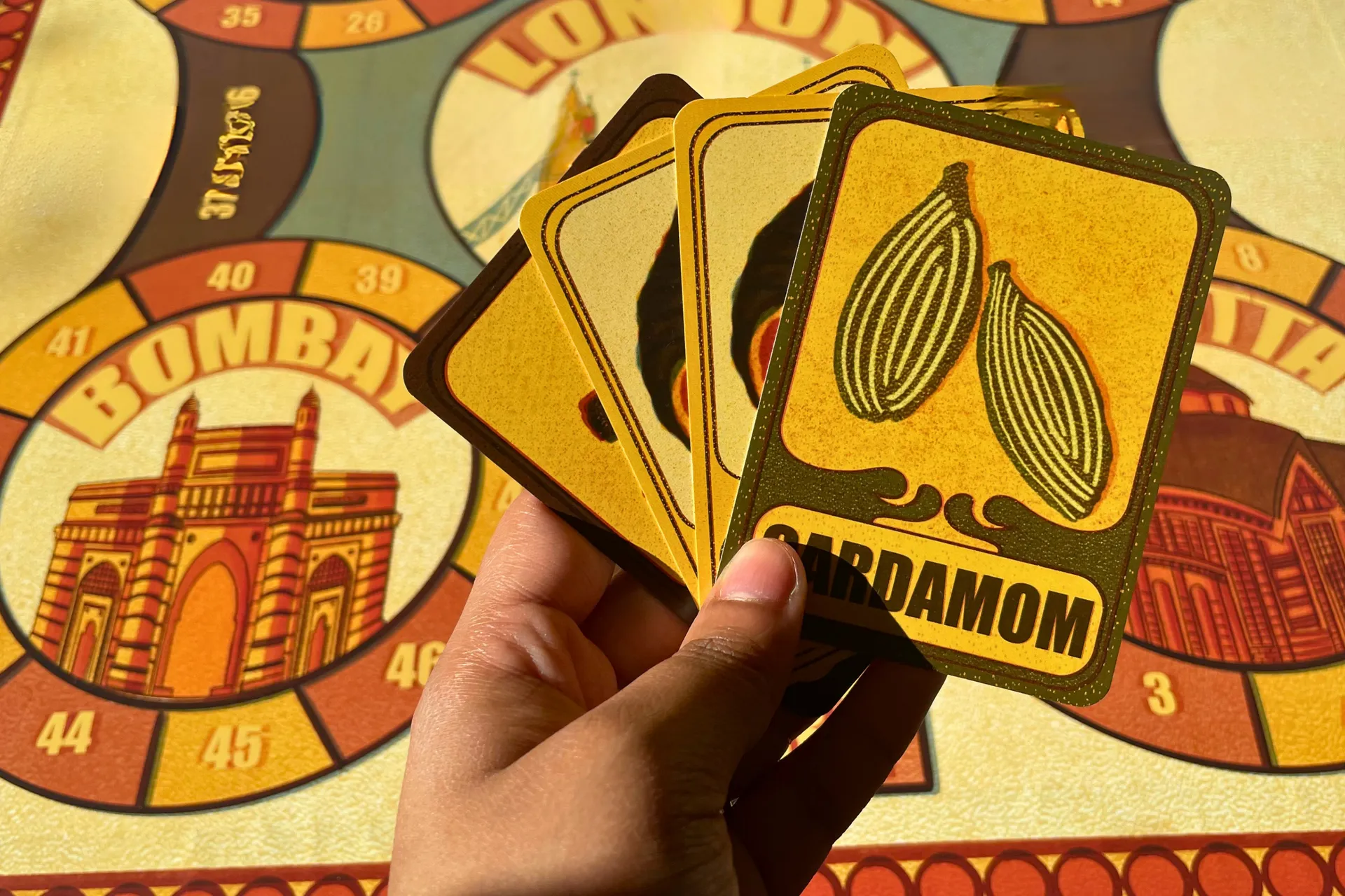 Spice Odyssey is a captivating board game that explores the historical spice trade between India and the UK during British rule. Inspired by the book “Curry: A Tale for Cooks and Conquerors,” the game immerses players in the vibrant world of Indian spices. Players navigate through key ports—Malabar, Madras, Bombay, and Calcutta—trading spices and making their way to London. The game’s visuals, created using a tricolor approach with red, blue, and yellow, draw inspiration from matchbox illustrations and employ Resograph brushes for a unique aesthetic. Spice Odyssey combines historical context with strategic gameplay, offering an engaging and educational experience.