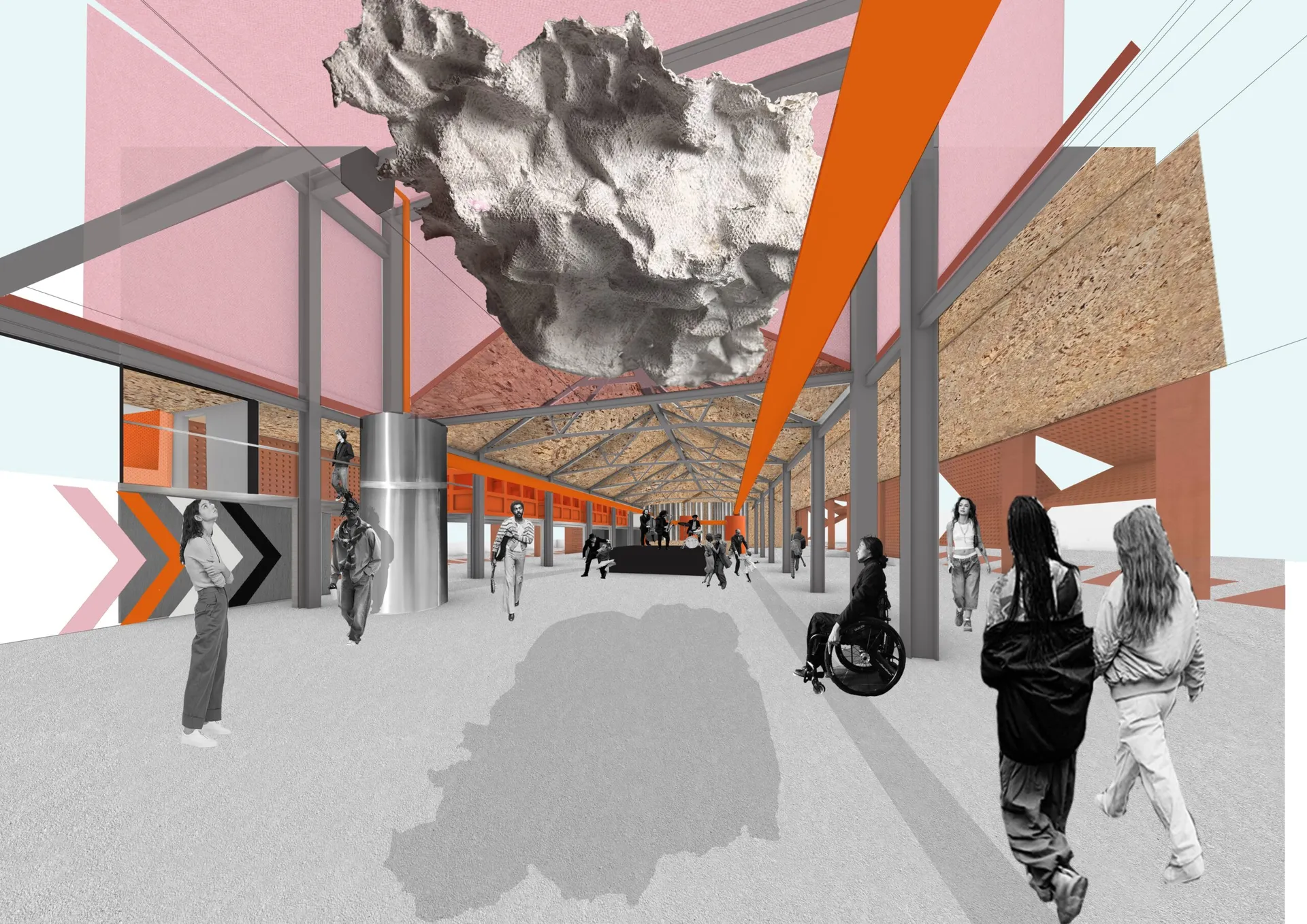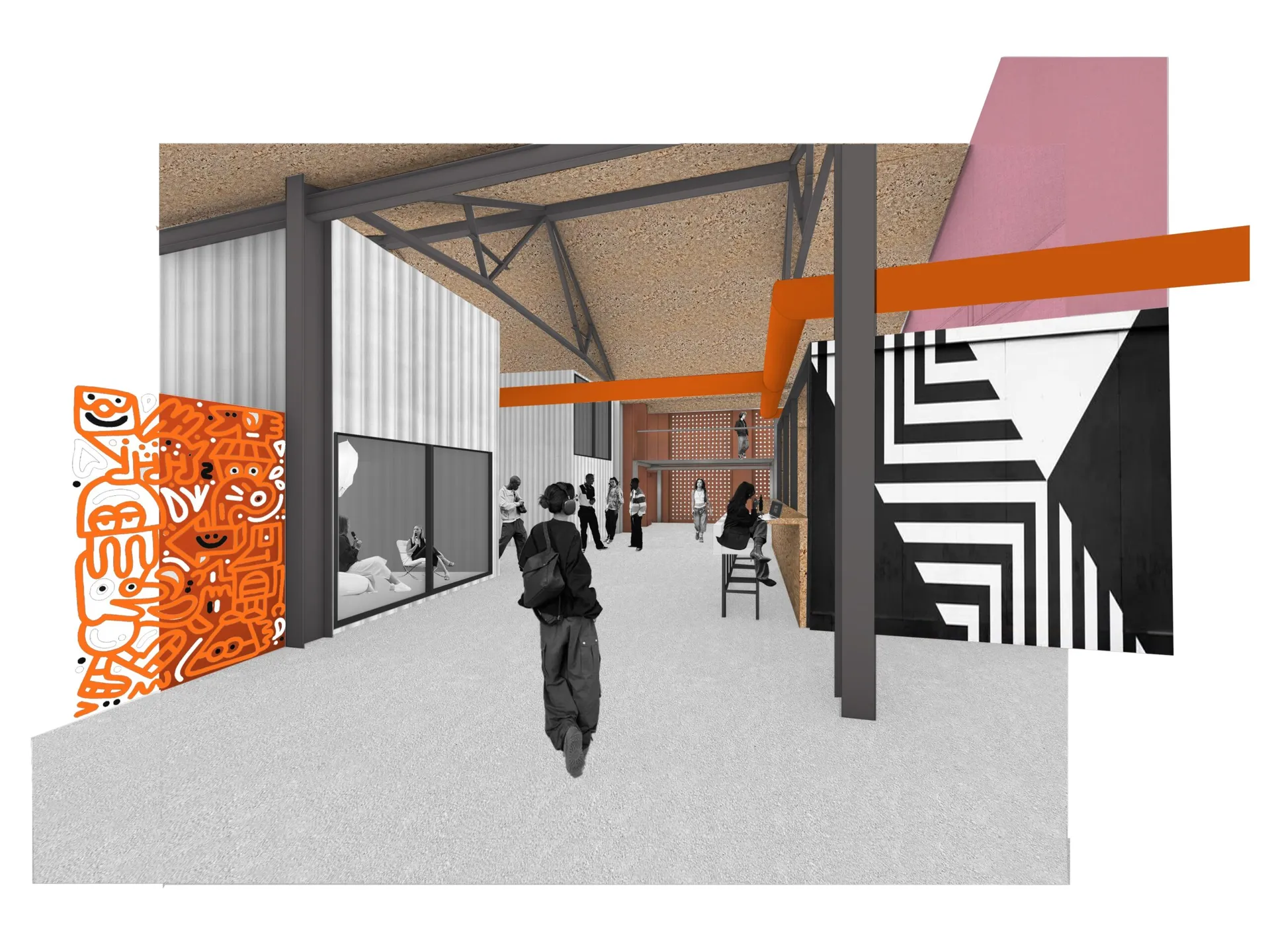 Most musicians are challenged with aspects of their career from promotion, branding and music editing. Therefore, creating a series of spaces that support musicians such as recording rooms, a graphics department and media content studios helps develop their careers. One of the challenges with this project is the transition of spaces for different types of performances as each genre of music has specific needs and functions of a space. Therefore, I aim to address these issues through modular design and paper waste production to produce pulp mixture, creating forms for differentiating performances providing an acoustic barrier and music genre aesthetics. To allow the space to adapt to inevitable changes as music evolves.