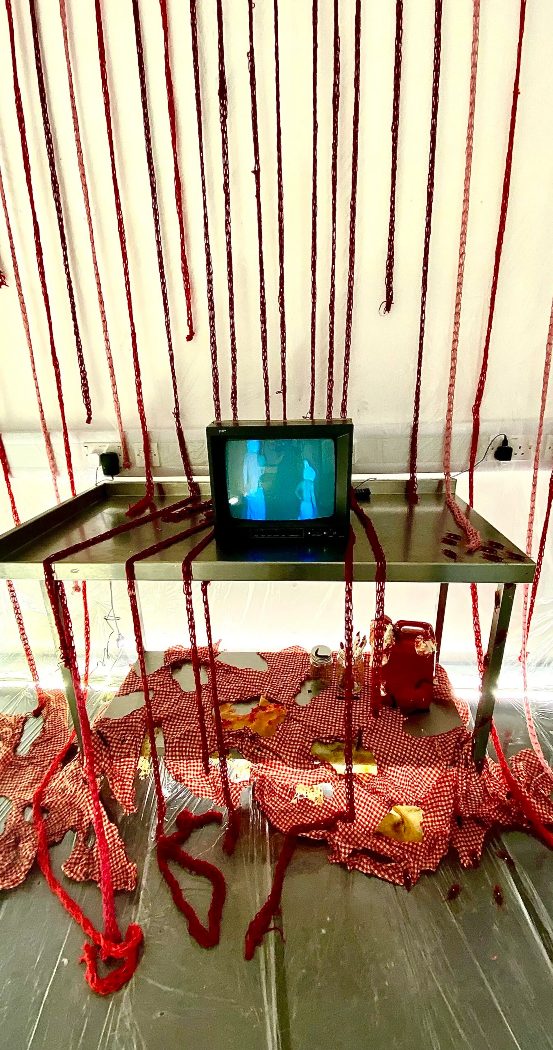 Gerrard aims to take the viewer from being a passive bystander to an active participant by immersing them within the work and challenging their understanding of society’s consumption and commodification of women.